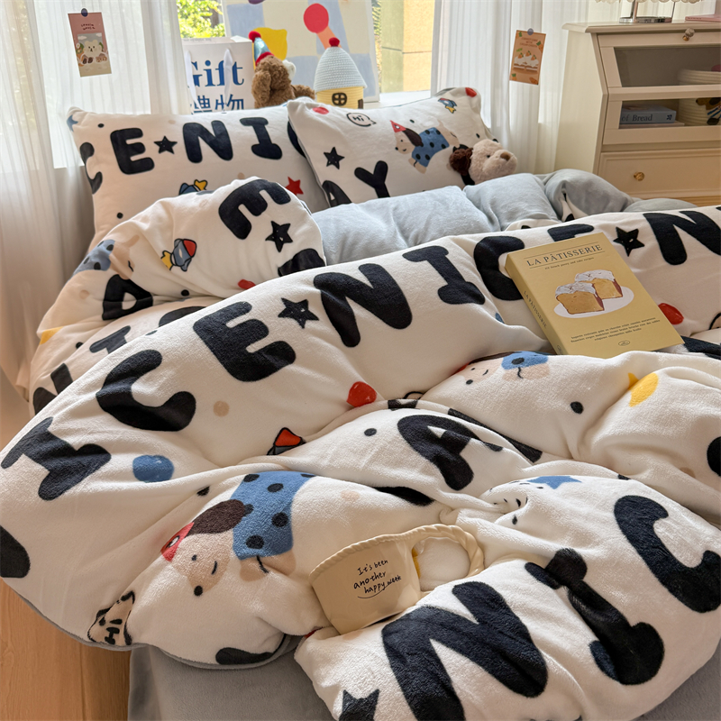 加厚牛奶绒四件套冬季款珊瑚绒床单双面绒被套法兰绒毛绒床上用品