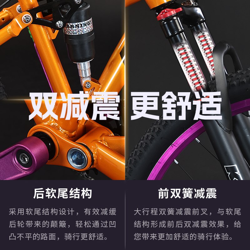 软尾土坡山地自行车变速双减震越野双碟刹炸街120响成人学生单车