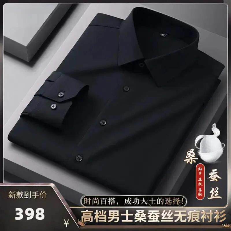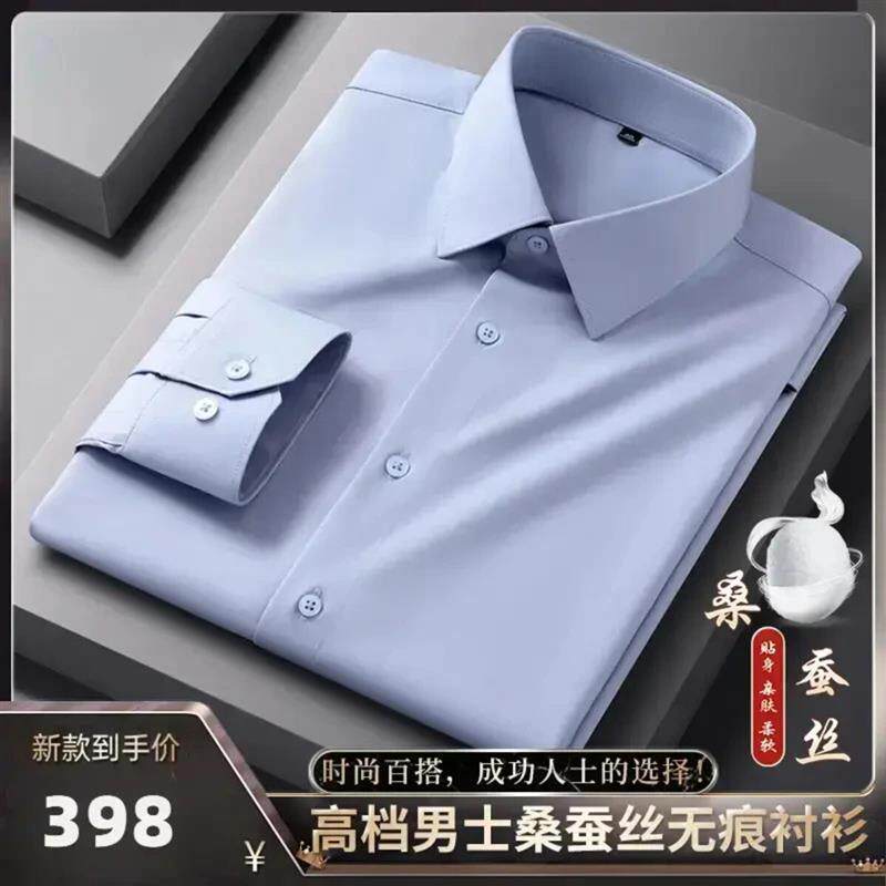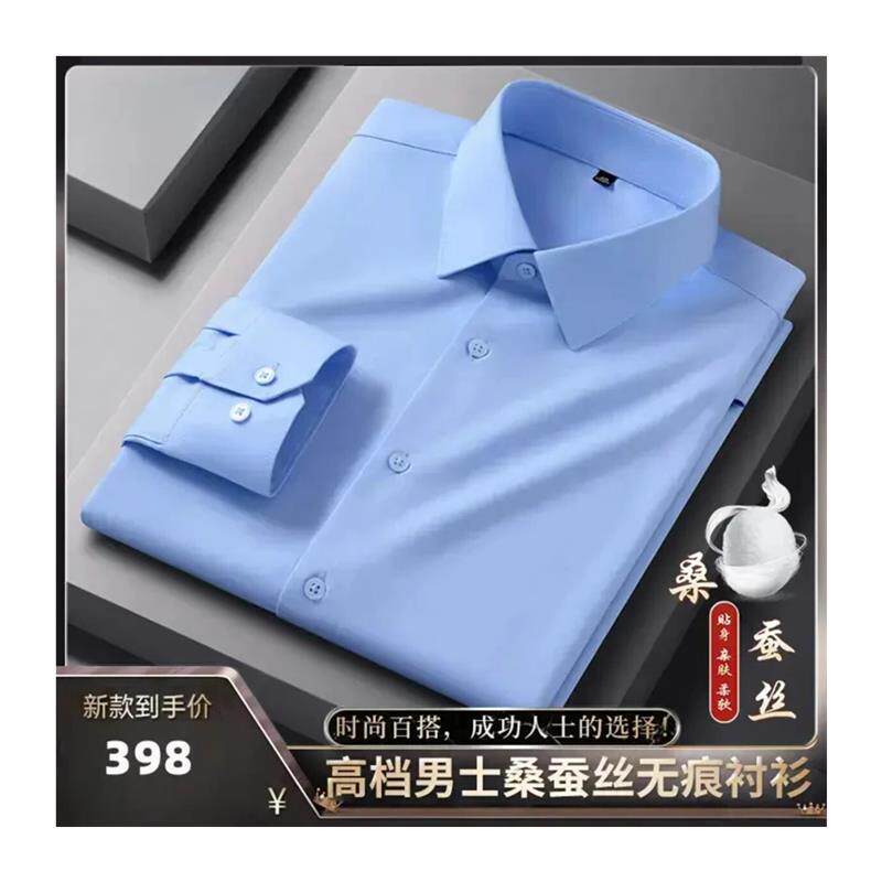航阳百货店天然桑蚕丝代尔轻奢无痕长袖衬衫商务休闲爸爸装衬衣