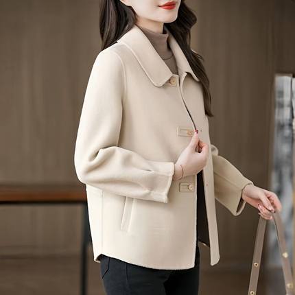 高档双面绒短外套春秋冬洋气中年女装妈妈双面羊毛呢外套上衣短款