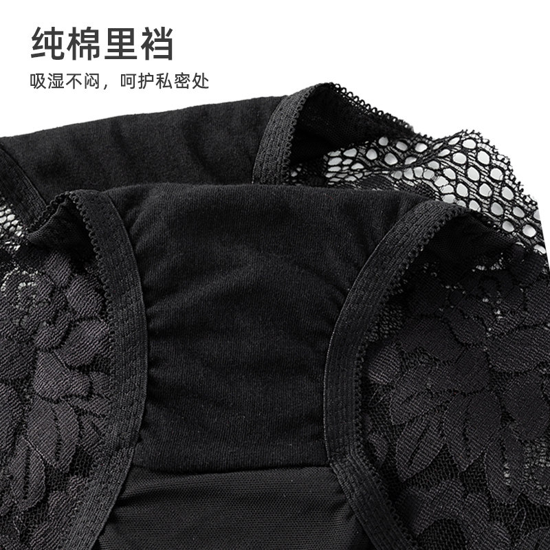 3条蕾丝内裤女黑色性感中腰高腰收腹新款薄无痕女士大码胖mm短裤