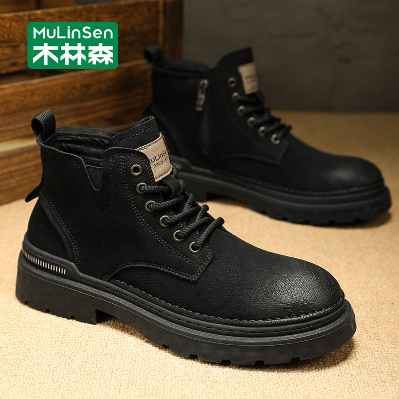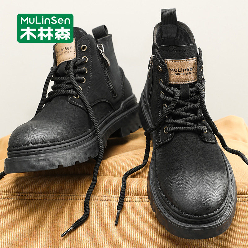木林森马丁靴男冬季高帮皮鞋秋季英伦风机车短靴子男士复古工装靴