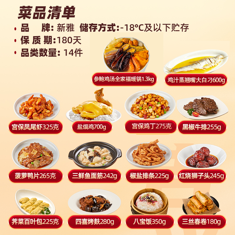 新雅14道年年有余家宴大礼包半成品盐焗鸡虾仁狮子头加热即食送礼