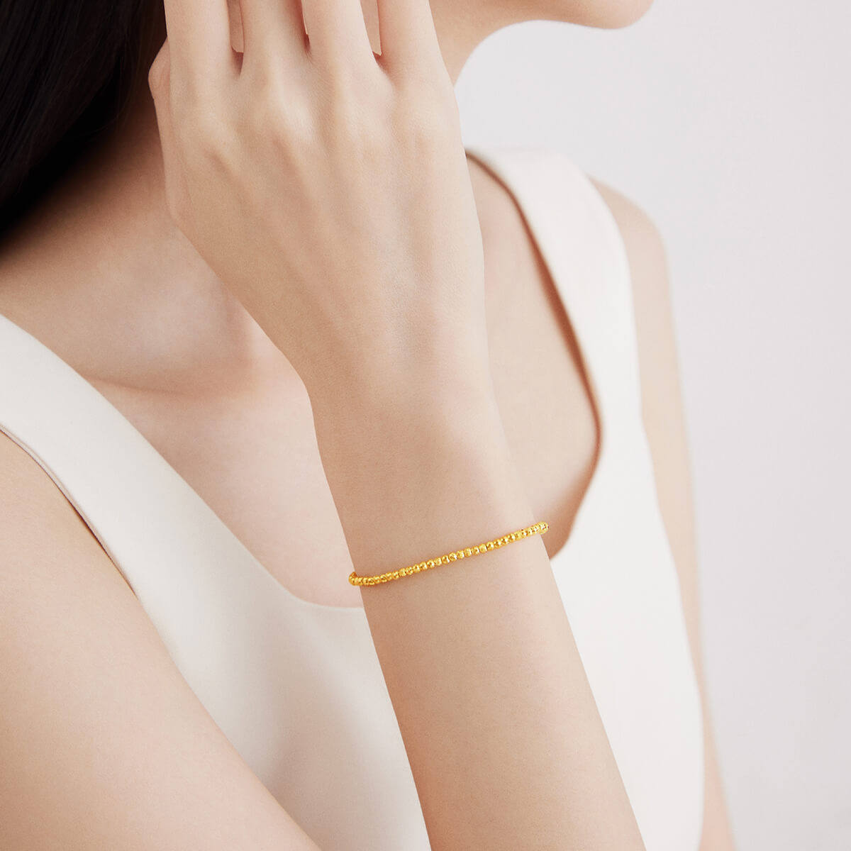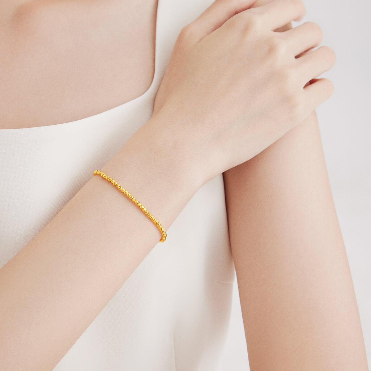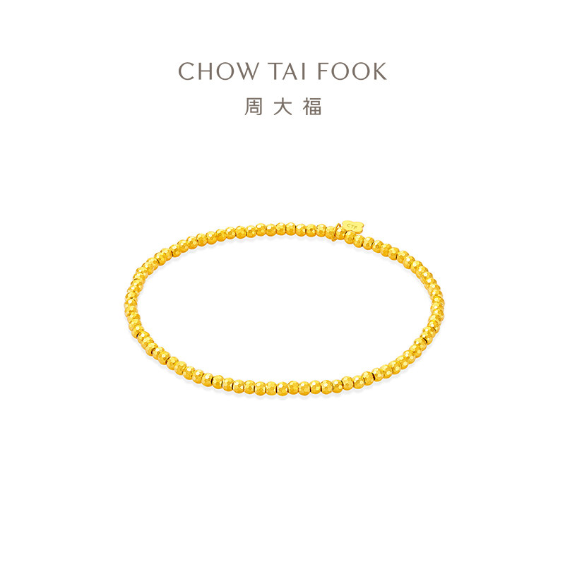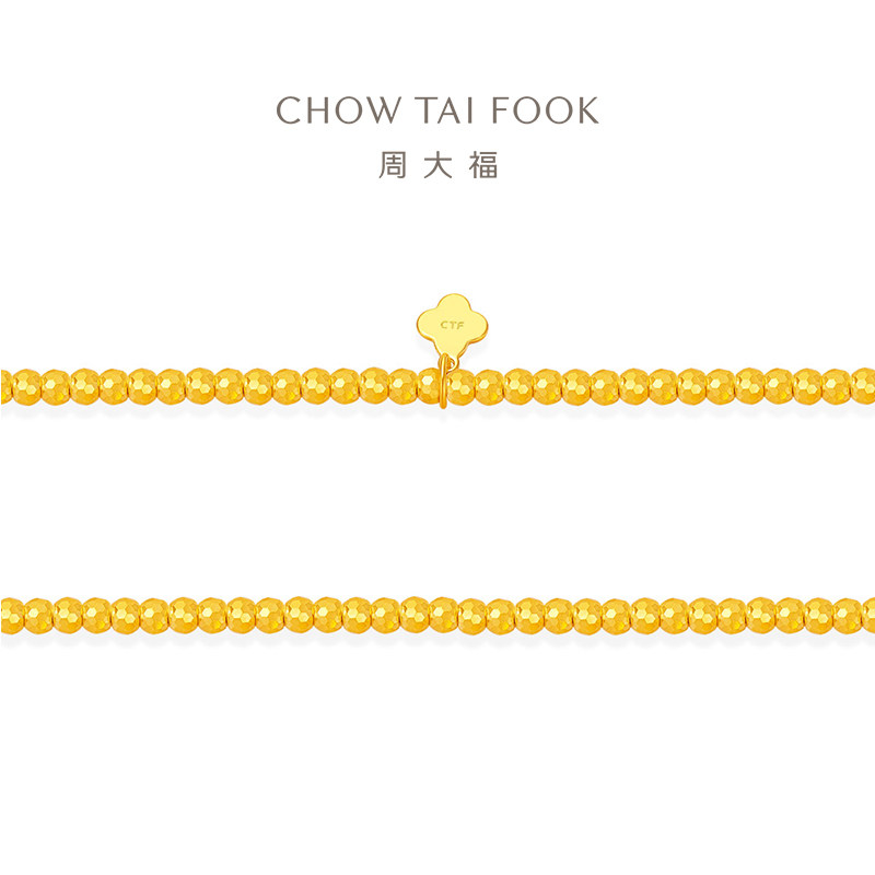 周大福爆闪四叶草金珠足金黄金手链女计价F230032官方礼物