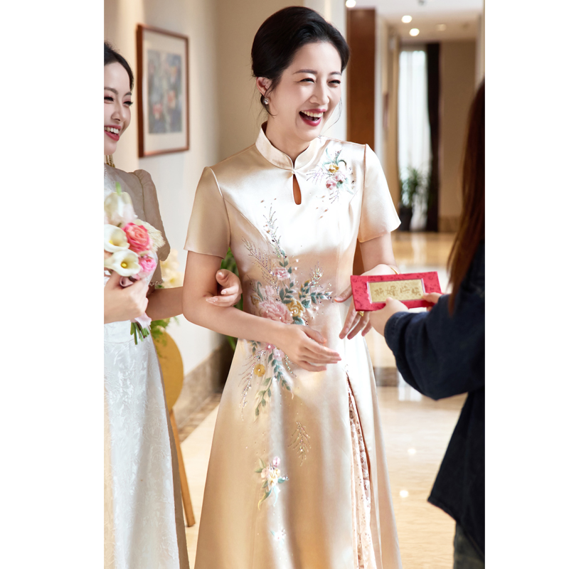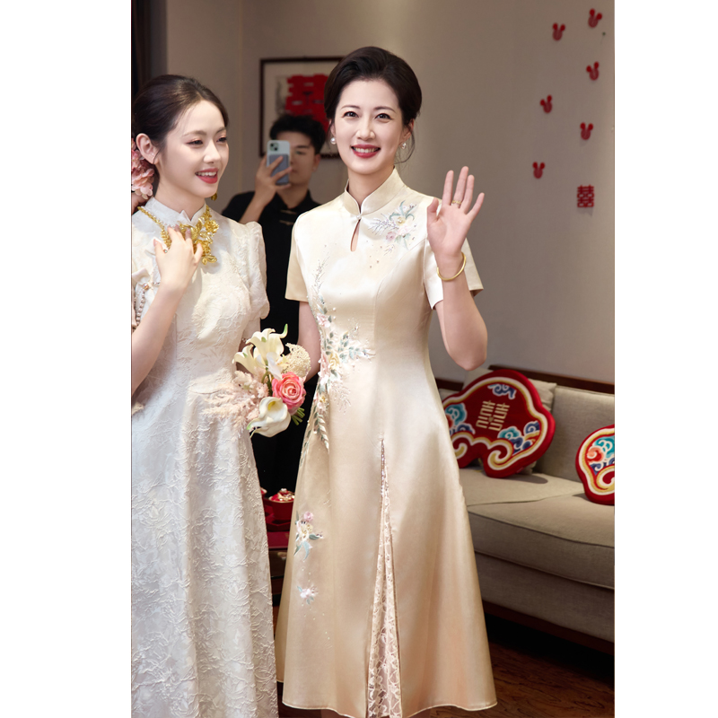 2025新款高端旗袍裙改良新中式优雅喜婆婆婚宴装气质妈妈礼服长裙