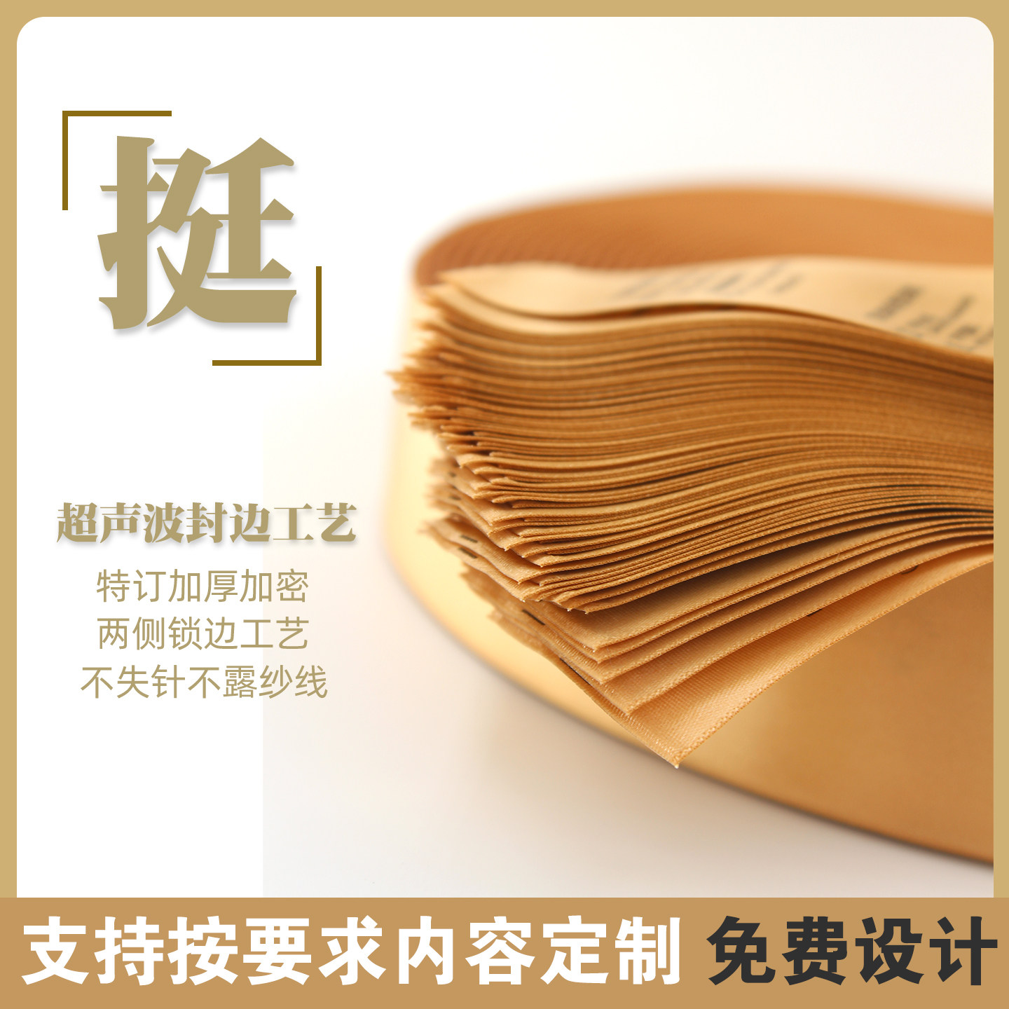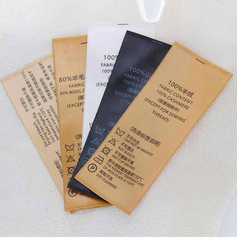 定制羊绒商标定做山羊绒金色织边黑色洗唛标签缎带布标现货洗水唛