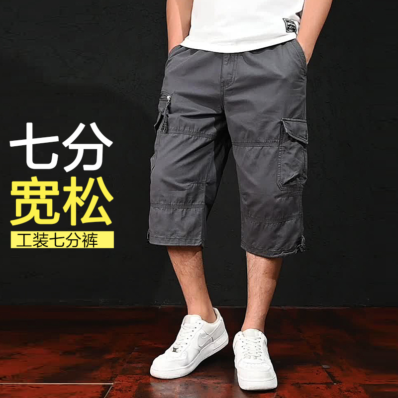 夏季休闲七分裤工装短裤男裤纯棉薄款宽松大码中青年多口袋中裤子