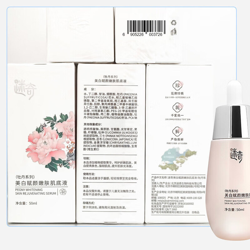 迷奇美白赋颜嫩肤肌底液牡丹花瓣精华水滋润爽肤补水祛斑淡斑套装