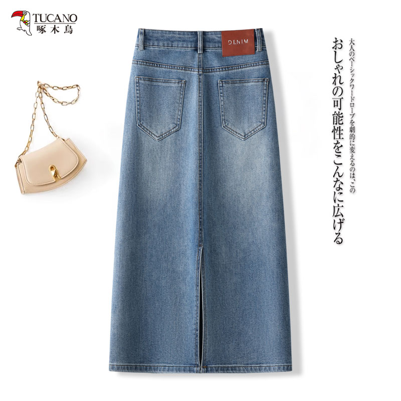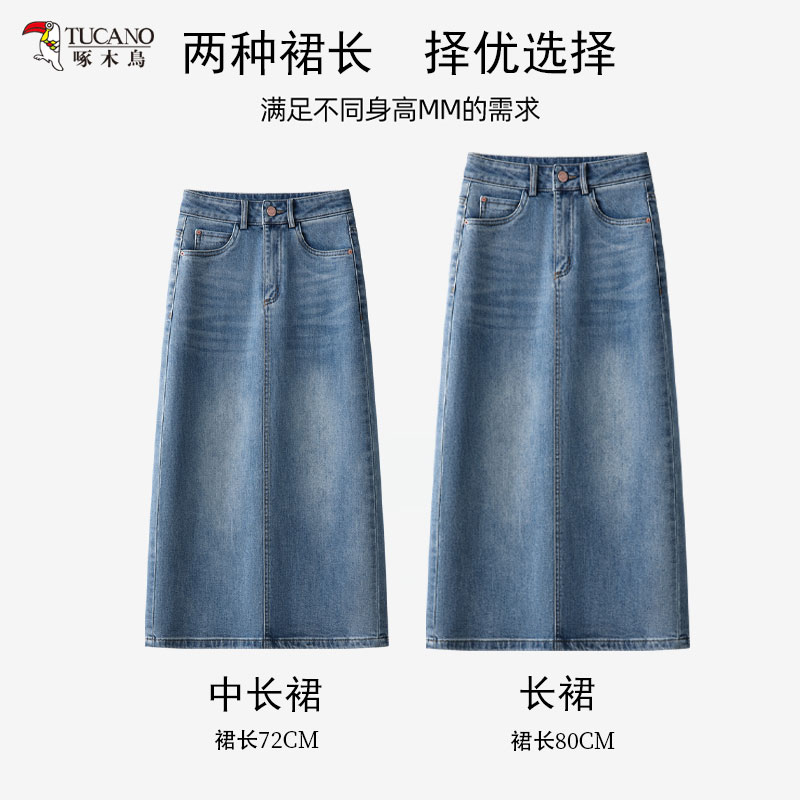 啄木鸟牛仔半身裙女夏季薄款2025新款高腰显瘦a字裙一步包臀裙