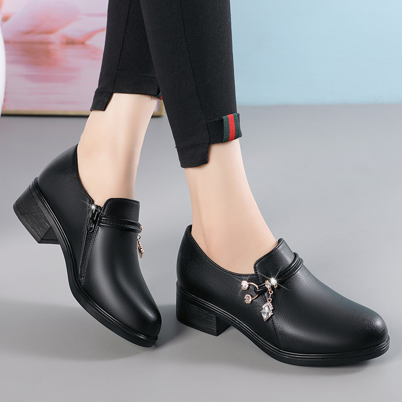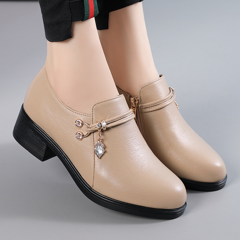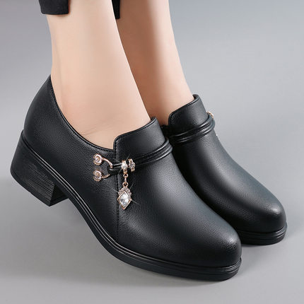 软皮皮鞋春秋女鞋休闲单鞋日常百搭款式软底舒适妈妈鞋子中老年鞋