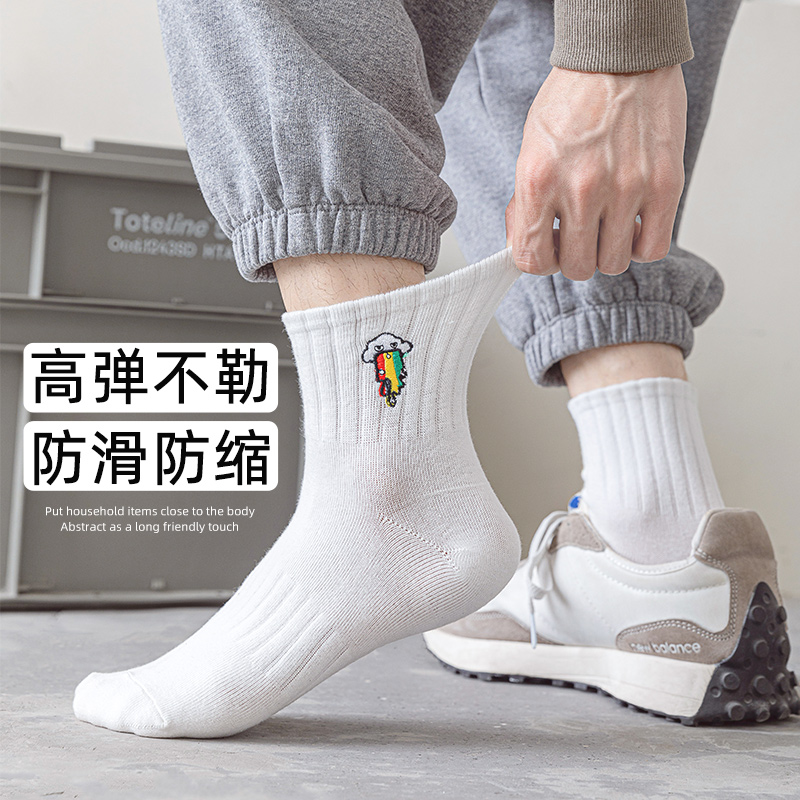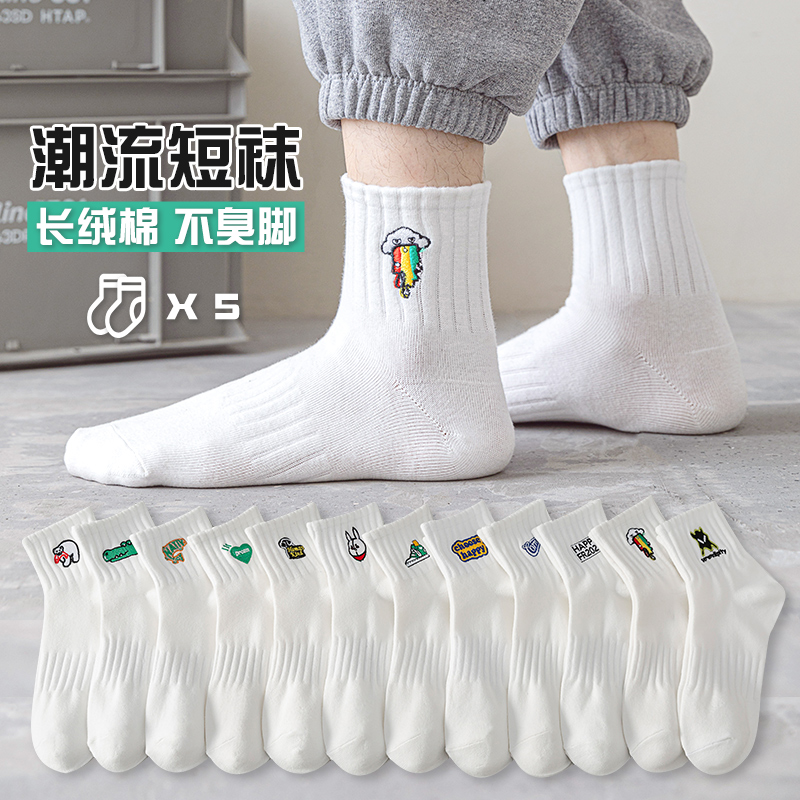 白袜子男大童短袜新疆棉防臭运动青少年初中生学生大码军训中筒袜