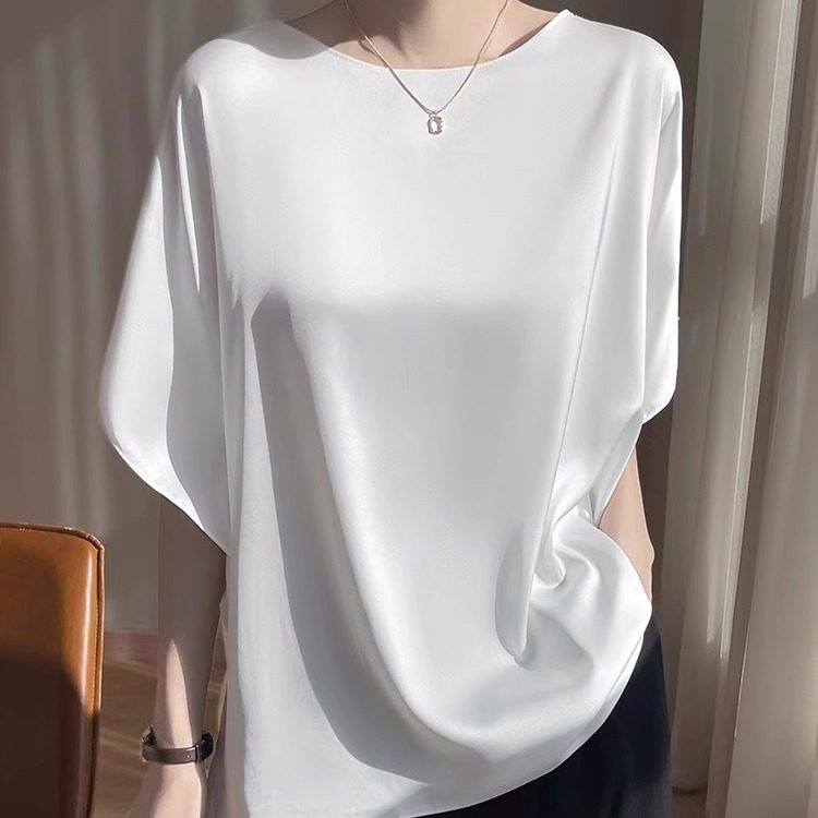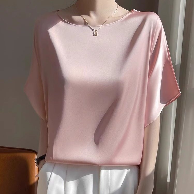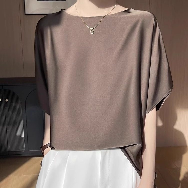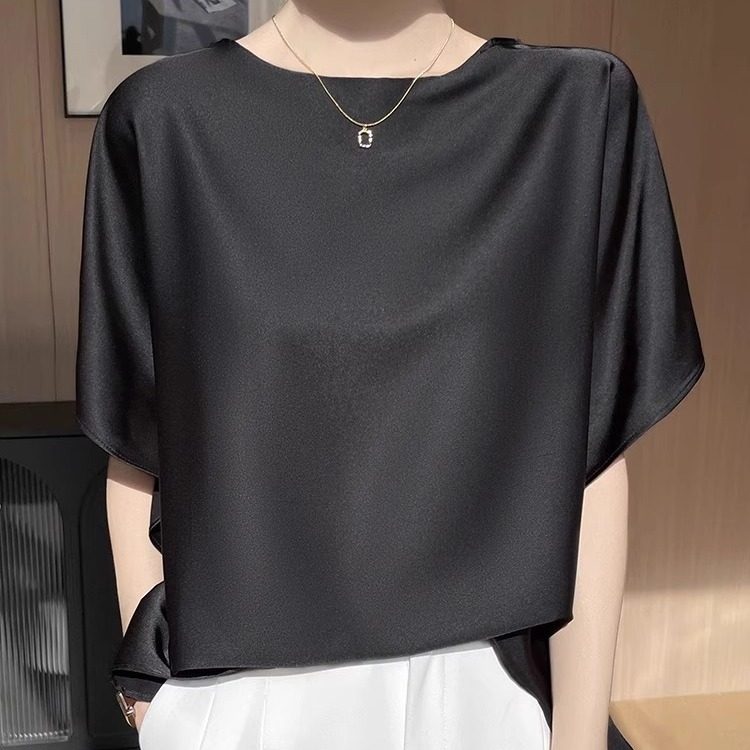 2025夏新中式一字领新款宽松上衣薄款醋酸缎面女套头衬衫外穿百搭
