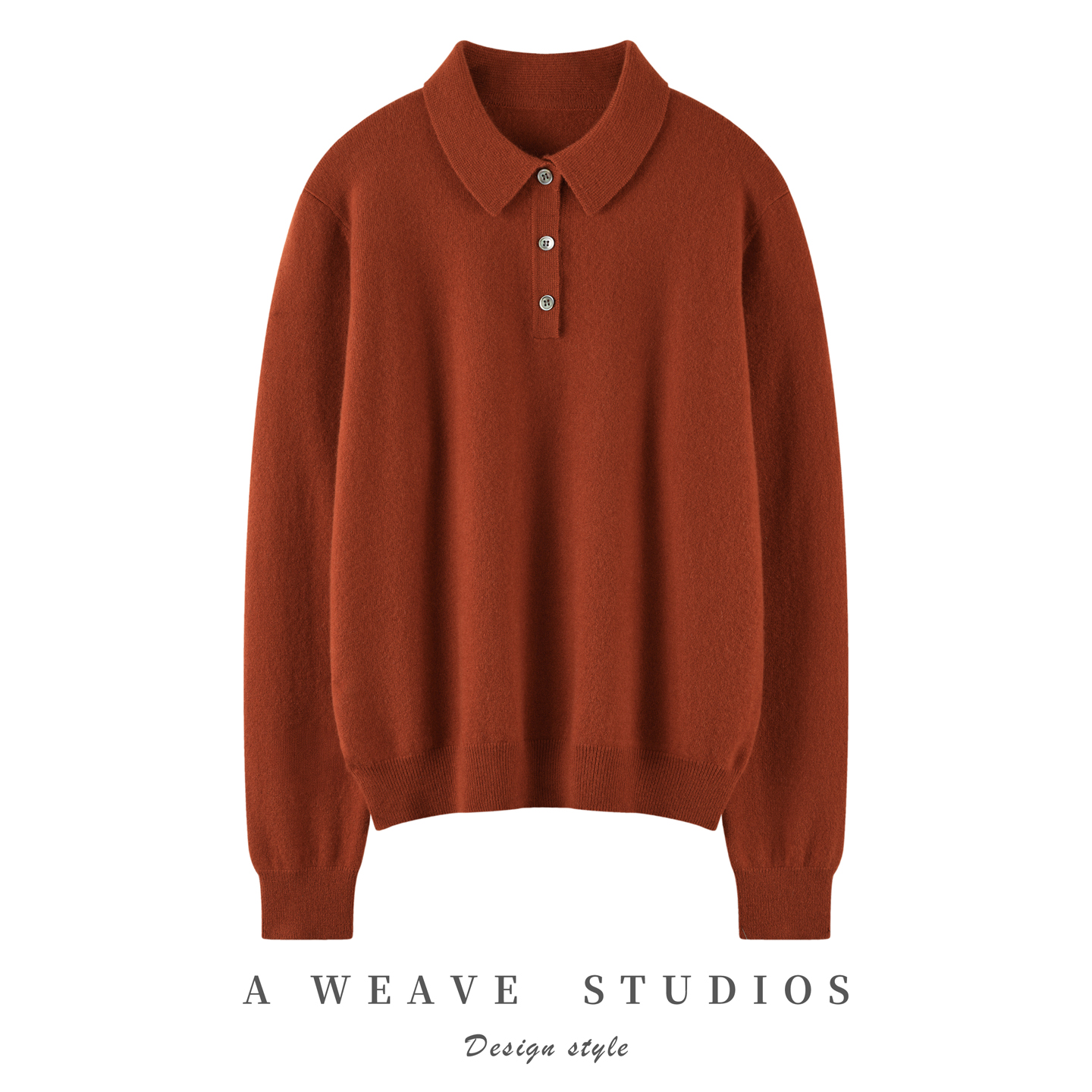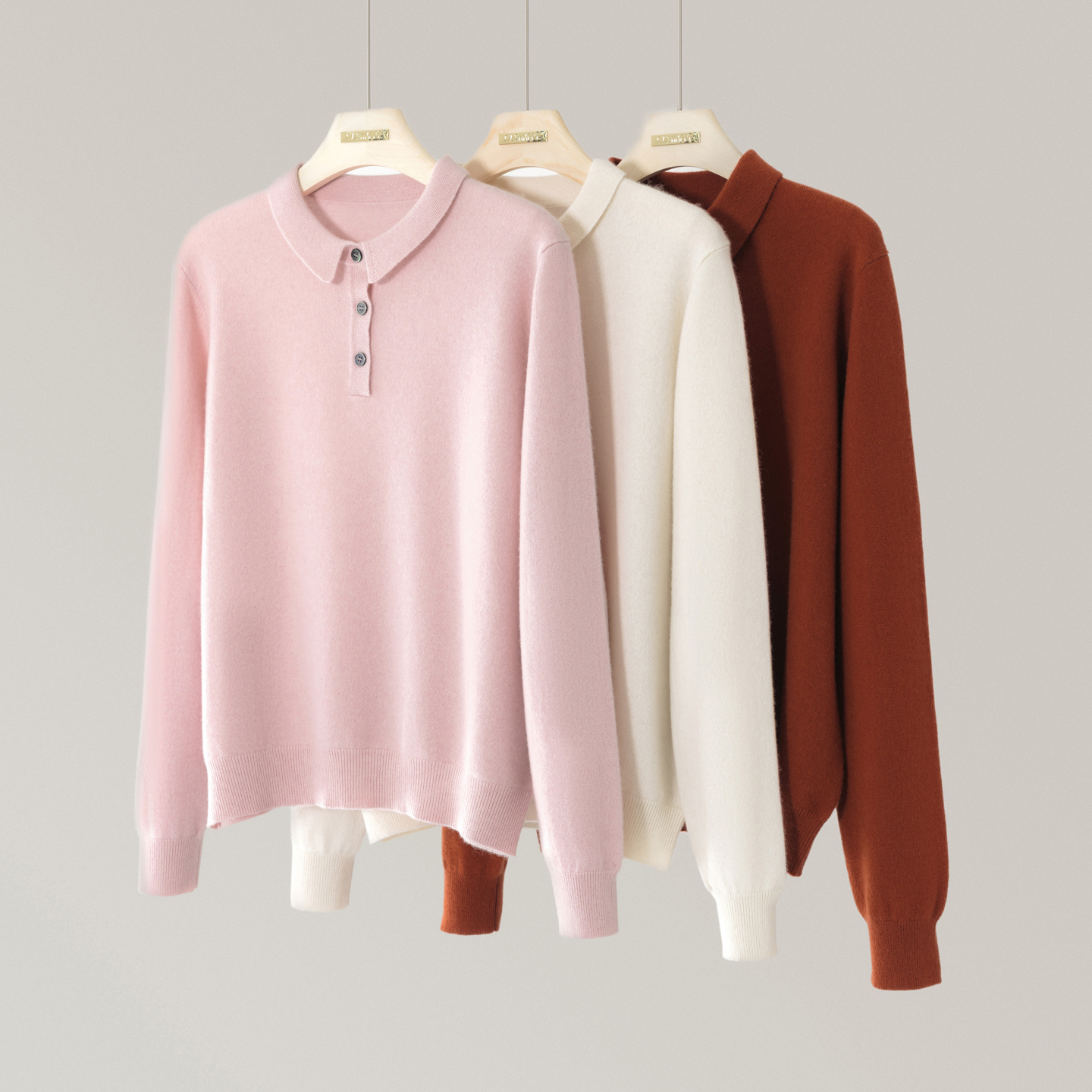 康赛妮POLO翻领100%纯山羊绒衫女毛衣秋冬新款百搭软糯针织打底衫