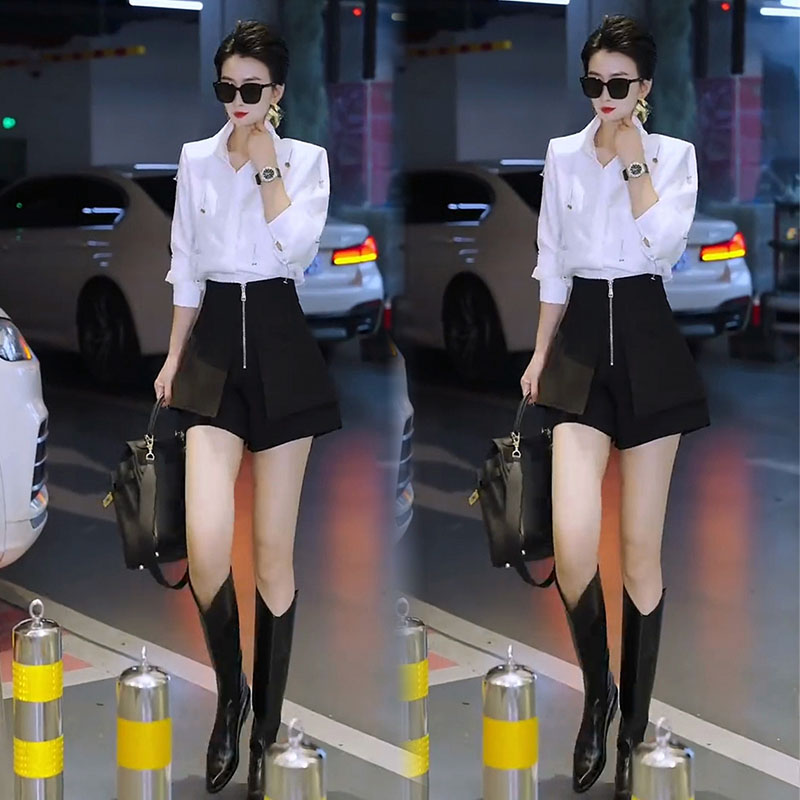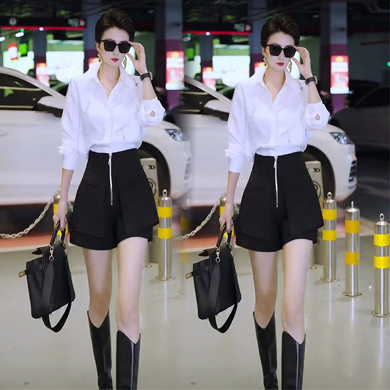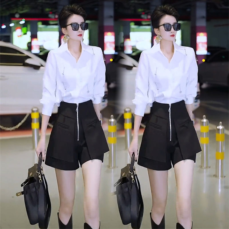 欧货气质时尚套装女2025春季洋气设计感小众显瘦衬衫短裤两件套潮