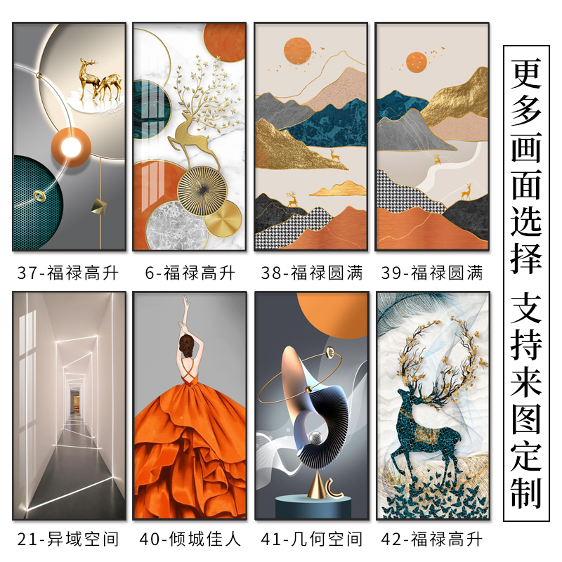 现代轻奢进门玄关装饰画走廊过道竖版挂画抽象客厅晶瓷画高档壁画