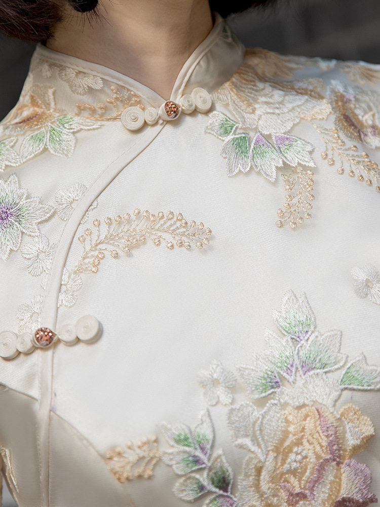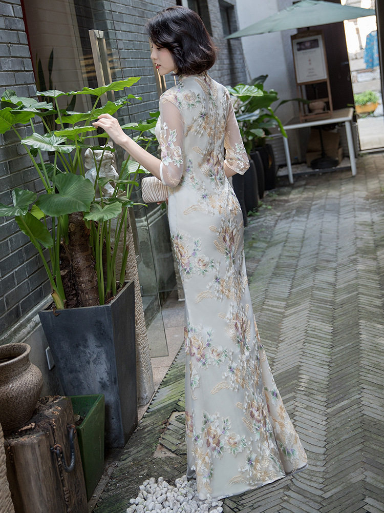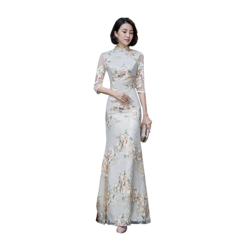 新式改良旗袍长款2020款少女修身优雅婚礼宴会走秀演出鱼尾裙大码