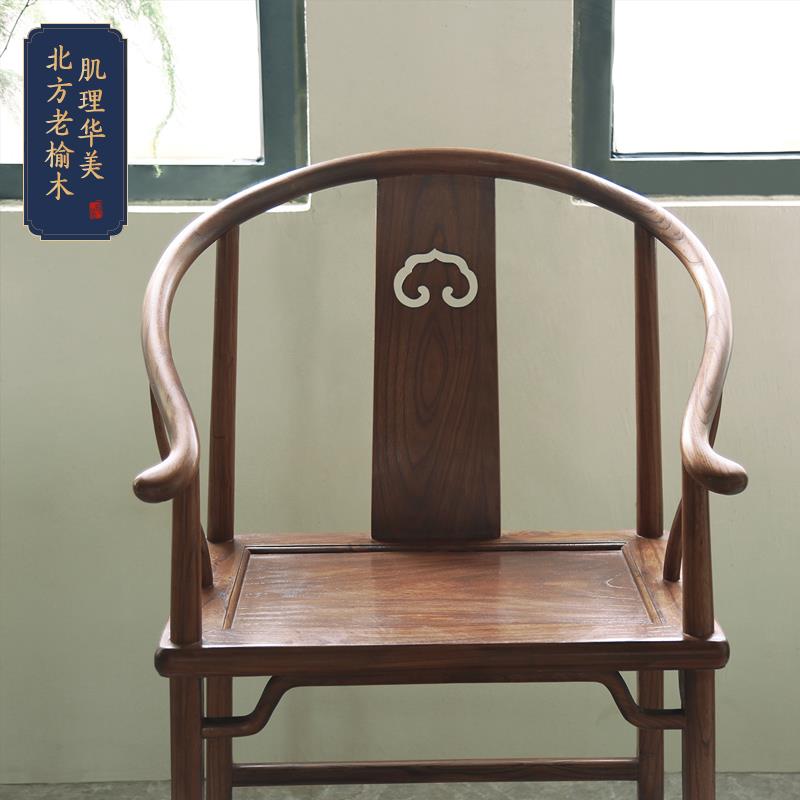 新中式茶椅子实木太师椅茶几茶椅三件套老榆木茶椅圈椅客人椅泡茶