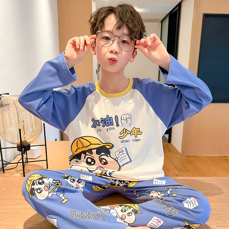 2025新款儿童睡衣男童纯棉春秋季长袖薄款青少年男孩中大童家居服