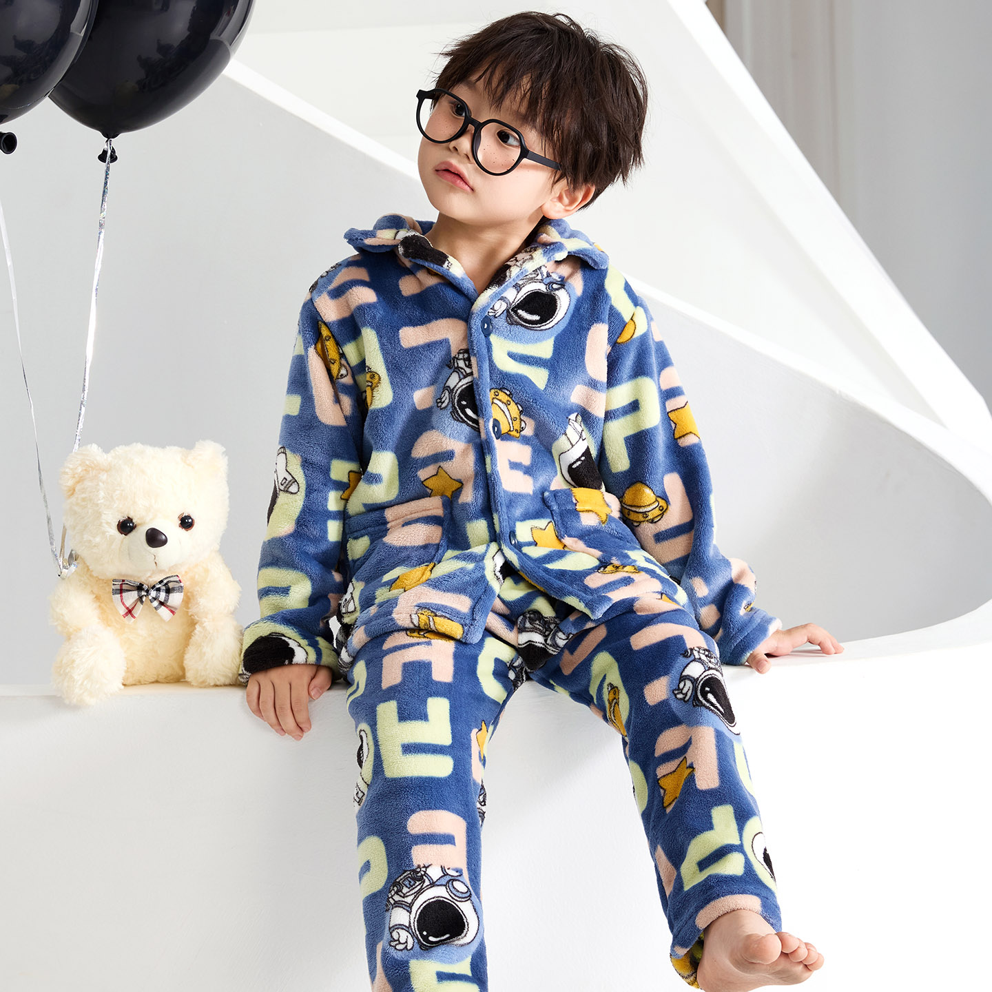 儿童睡衣秋冬季男孩法兰绒加厚女童保暖珊瑚绒男童宝宝家居服套装