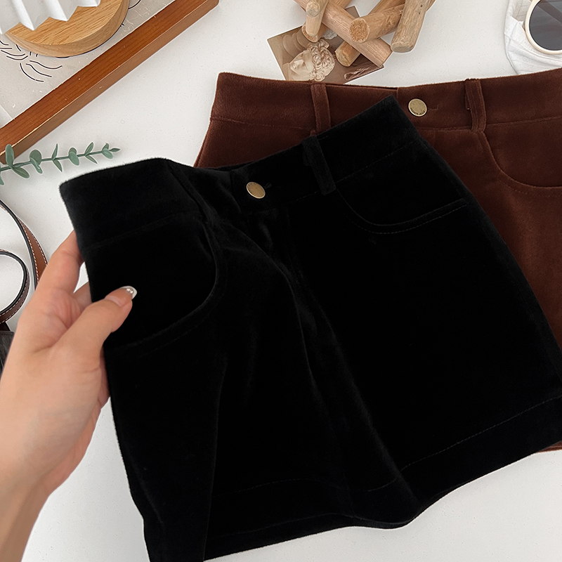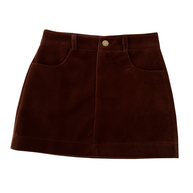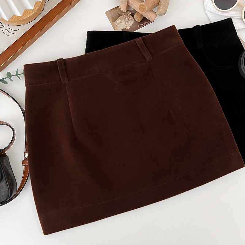 复古简约咖色丝绒半身裙女秋冬新款显瘦百搭辣妹高腰a字包臀短裙