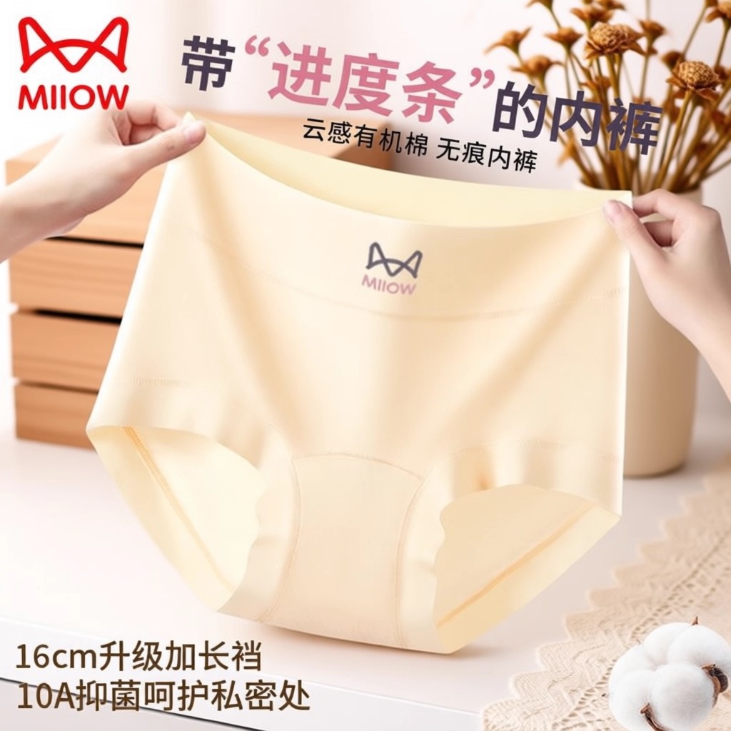 猫人女士纯棉内裤甄选新疆长绒棉更细更软透气无痕內裆收腹抗菌