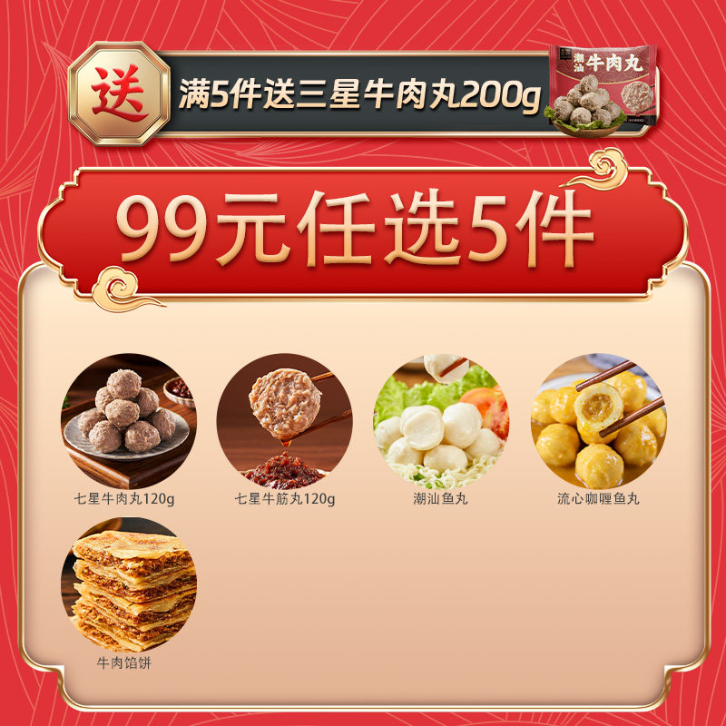 【99元任选五件】喜辉咖喱鱼丸爆浆黄金鱼蛋关东煮肉丸火锅纯鱼肉