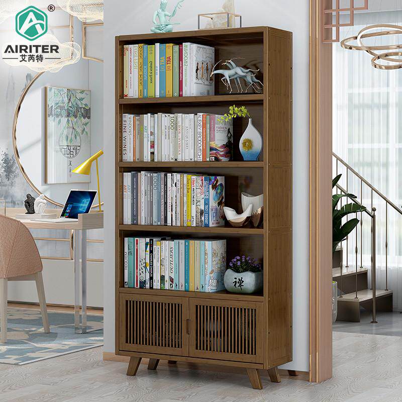北欧简约实木书柜带门书架置物架落地学生儿童卧室书房收纳展示柜