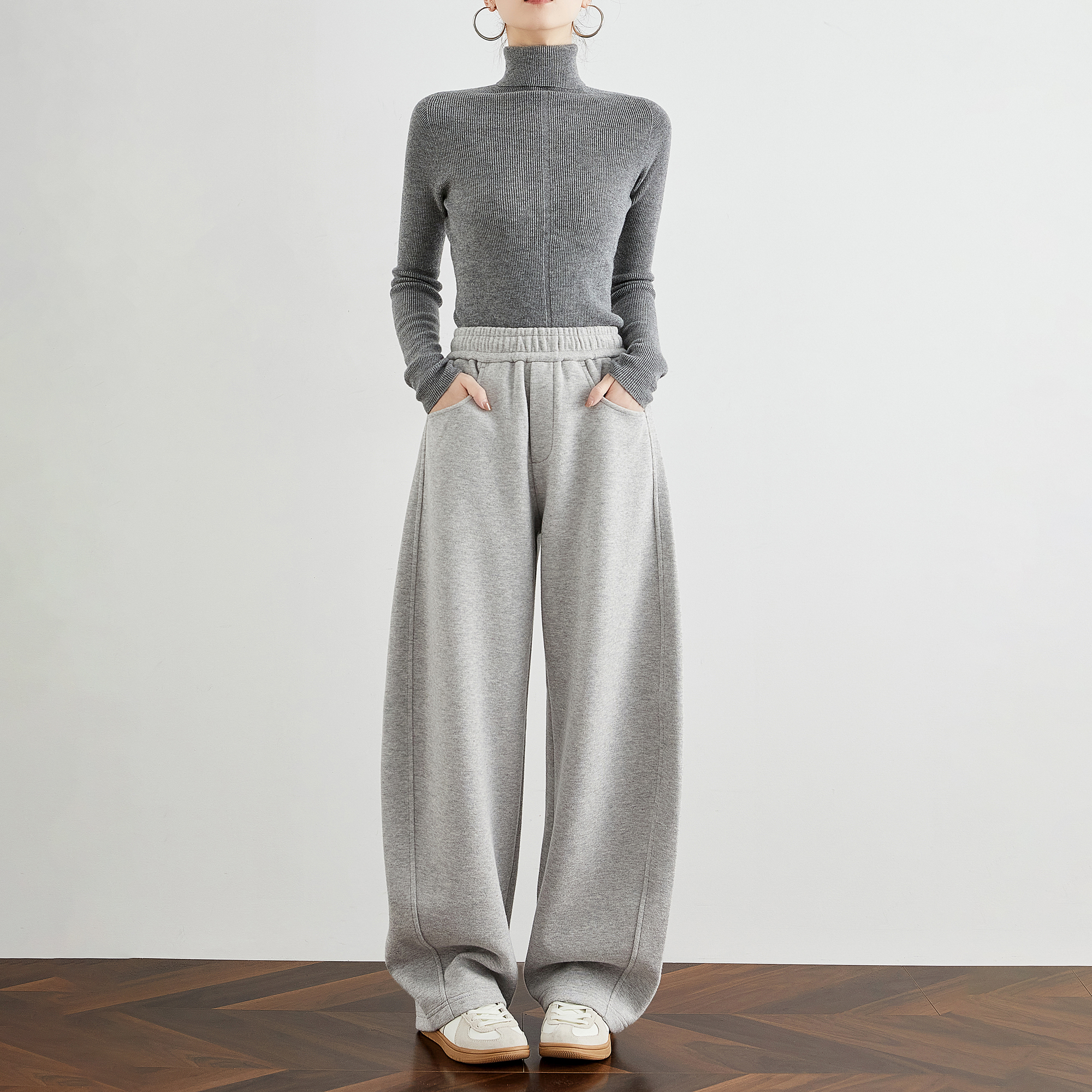 奕兮小个子卫裤松紧腰阔腿香蕉裤加绒休闲裤显瘦直筒弯刀运动裤女
