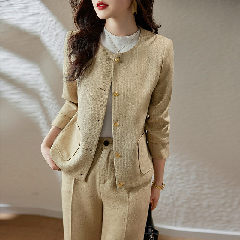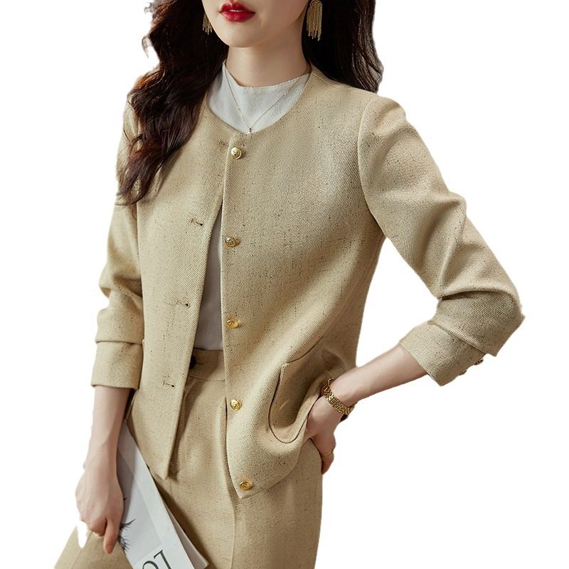 米白色西装外套女秋冬2023新款高级感时尚气质名媛小香风西服套装