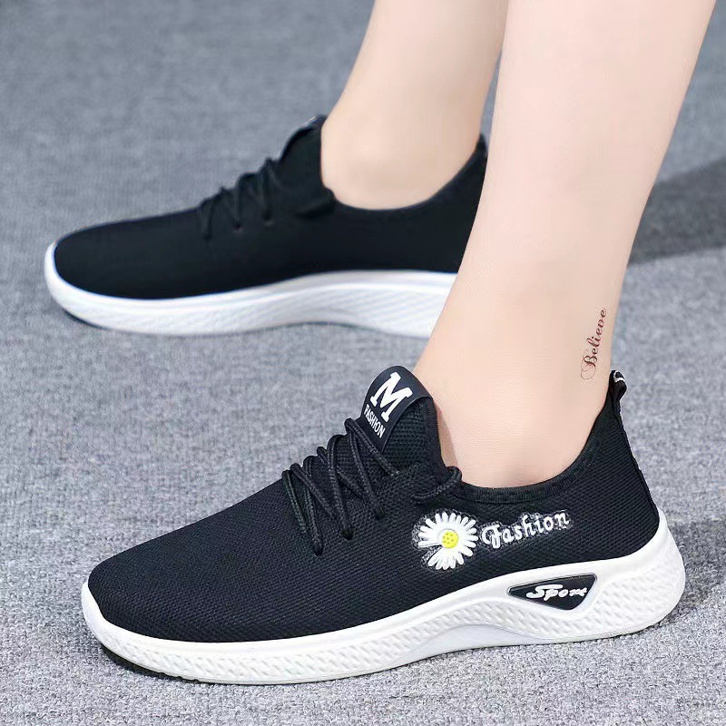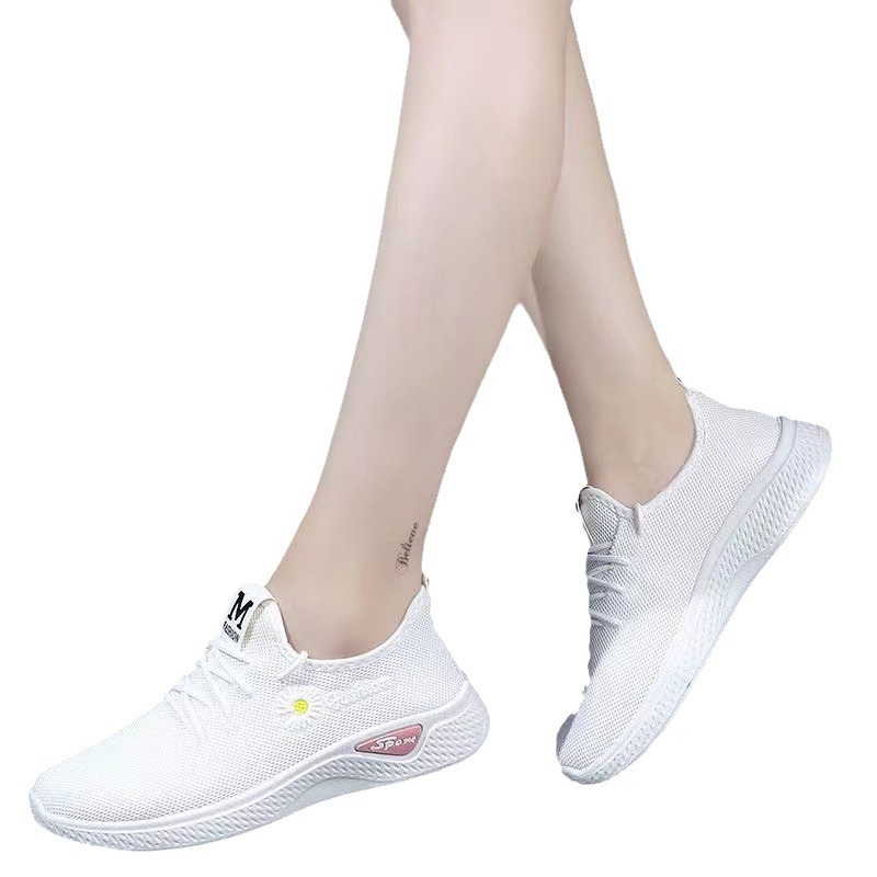 厚底运动鞋女小白鞋休闲一脚蹬透气跑步鞋飞织软底广场舞妈妈鞋潮