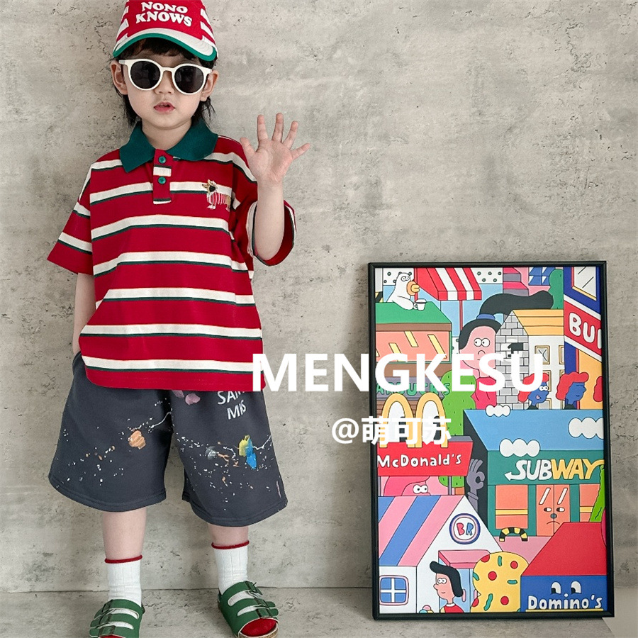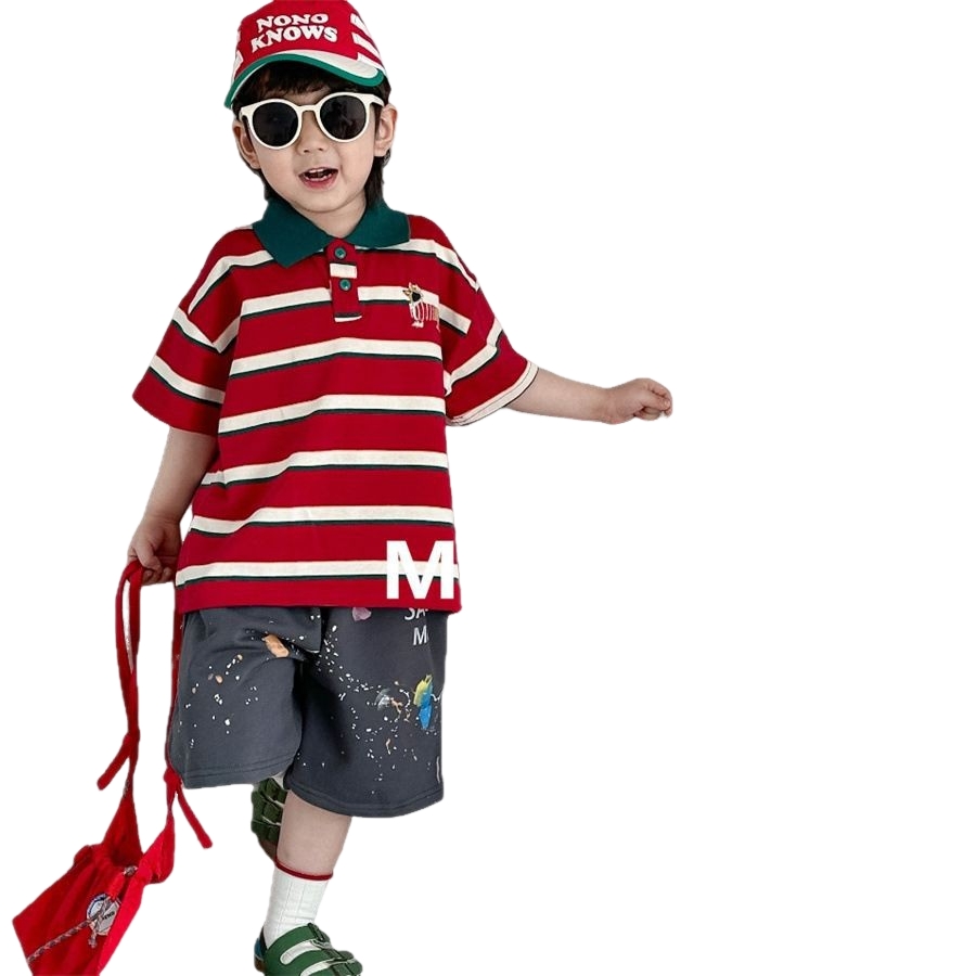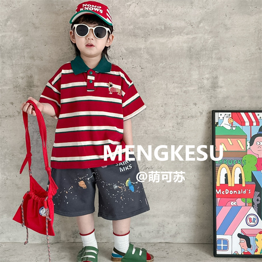 韩版儿童POLO短袖T恤2025夏款男童上衣帅气套装中小童体恤童装潮