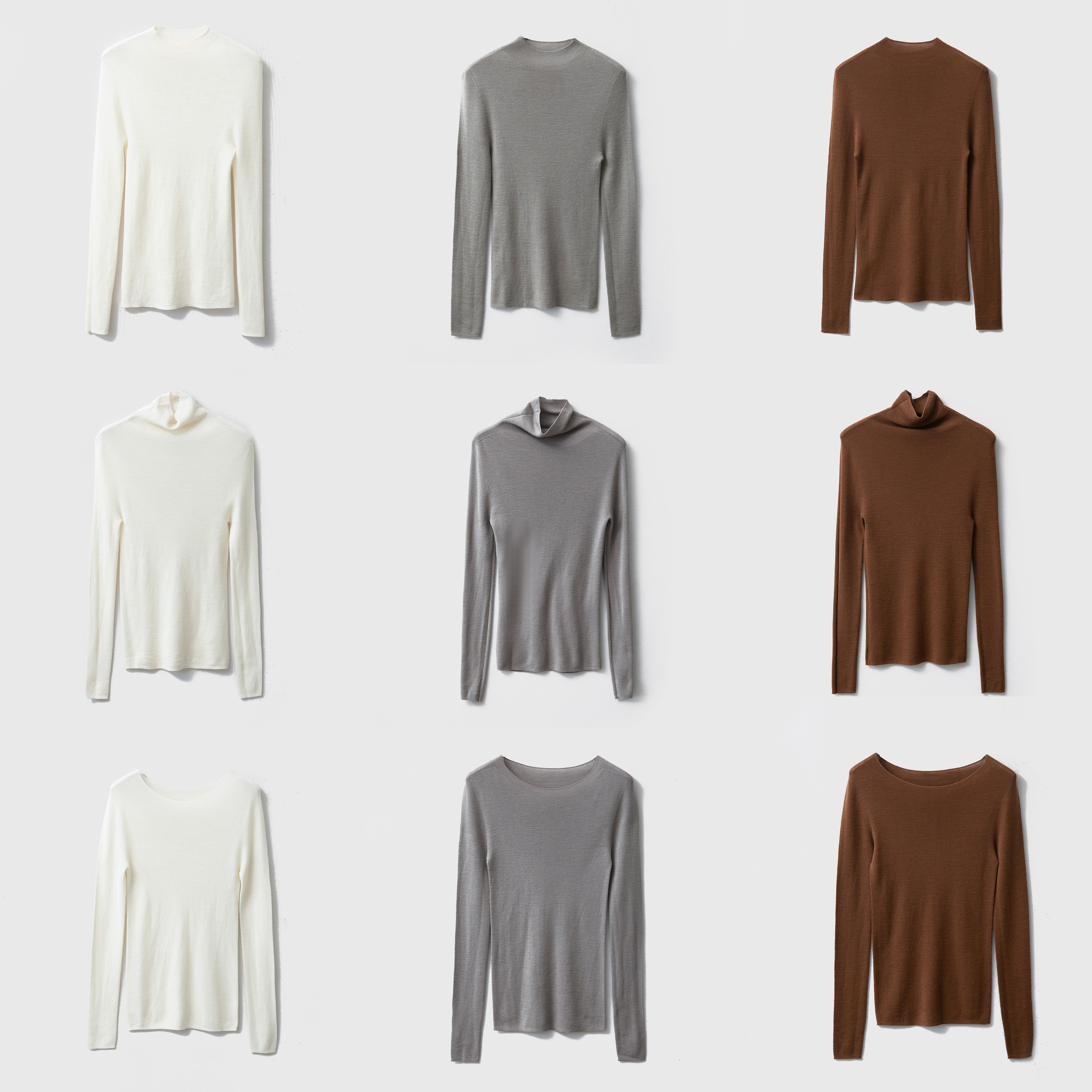 一丝牵18针60支德国扬子纱无缝100%羊毛针织衫可机洗亲肤贴身毛衣