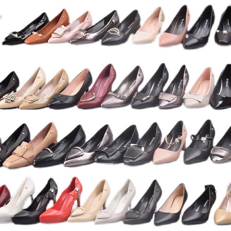 断码捡漏春秋女士细跟中跟浅口时尚女单鞋青年粗高跟尖头职业女鞋