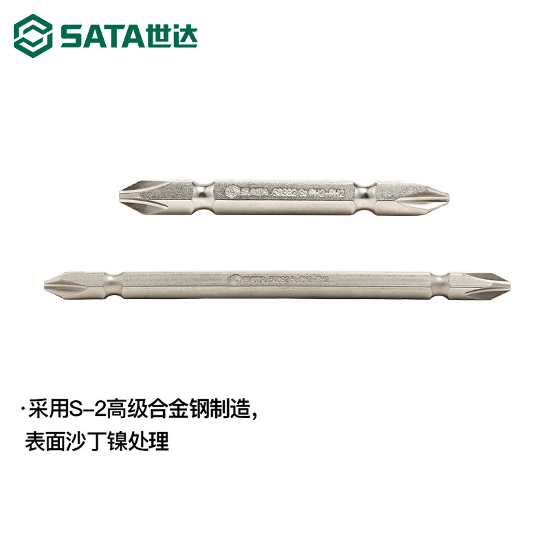 世达双头旋具头6.3mm批头S2一字十字65mm/110mm长螺丝刀头替换头