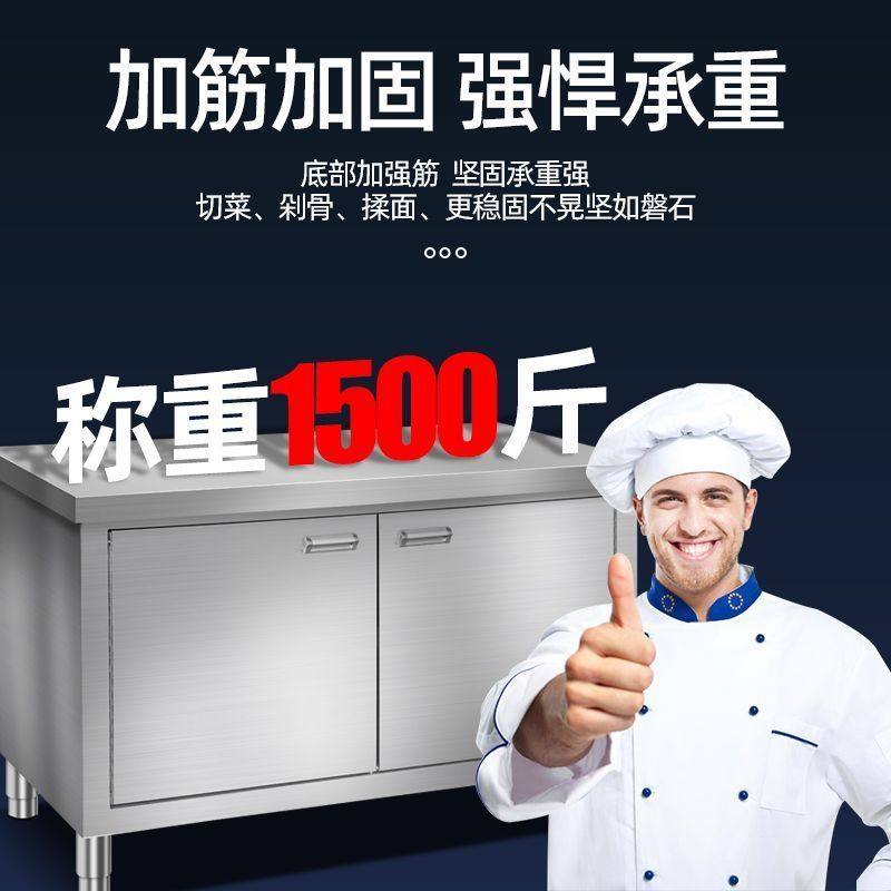 焊接304不锈钢操作台特厚对开门工作台碗碟柜厨房橱柜带门打荷台