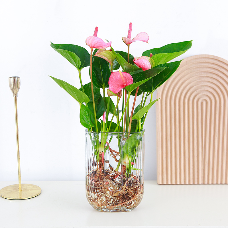 粉掌盆栽水培植物室内好养绿植水养花卉四季常青红掌鲜花一帆风顺