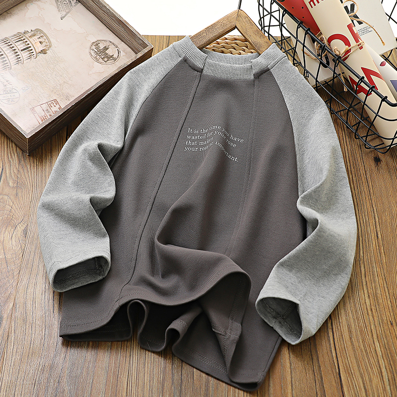 韩版拼接款儿童T恤长袖中大童休闲上衣春秋童装男童圆领打底衫潮