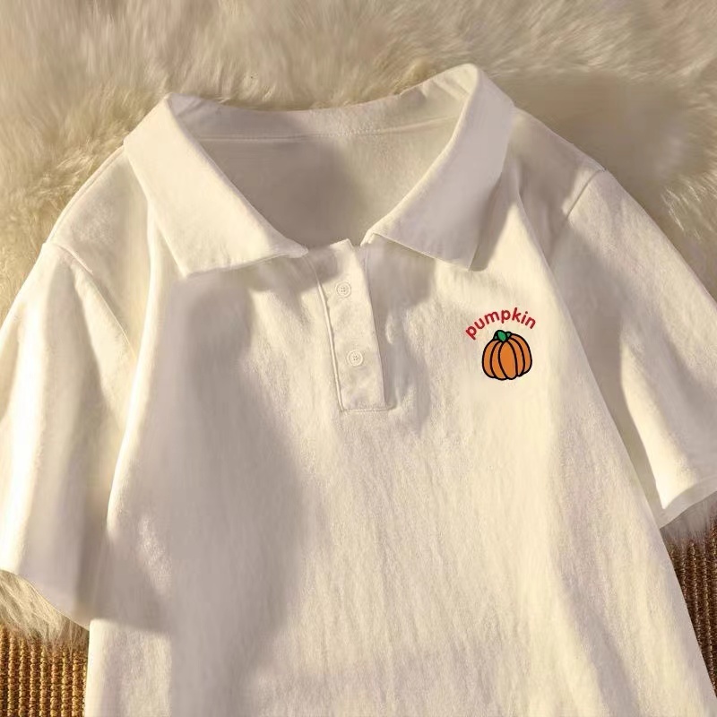 中大童100%纯棉宽松小众短袖t恤polo衫女童夏设计感日系翻领上衣