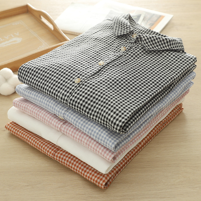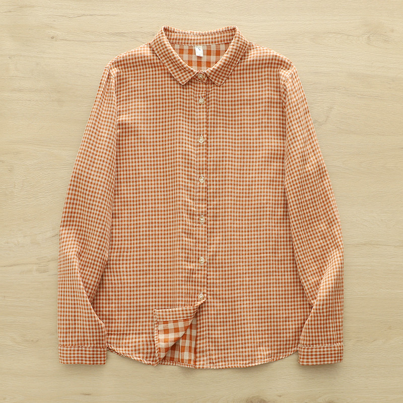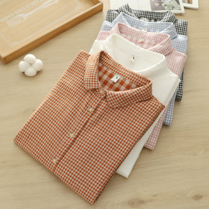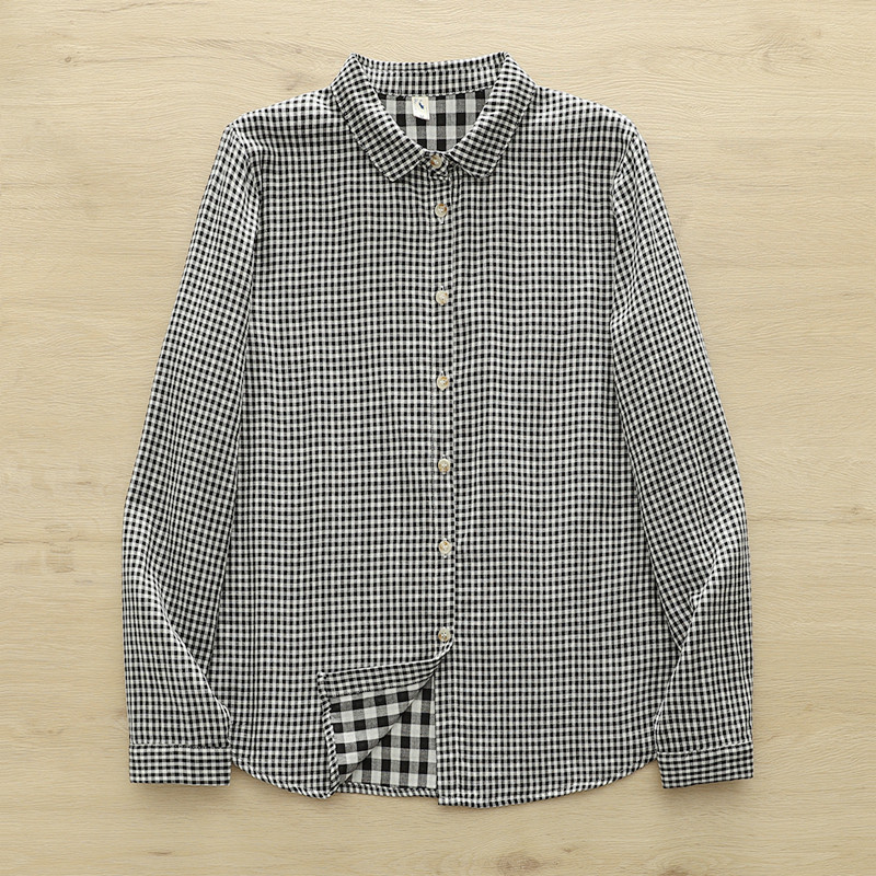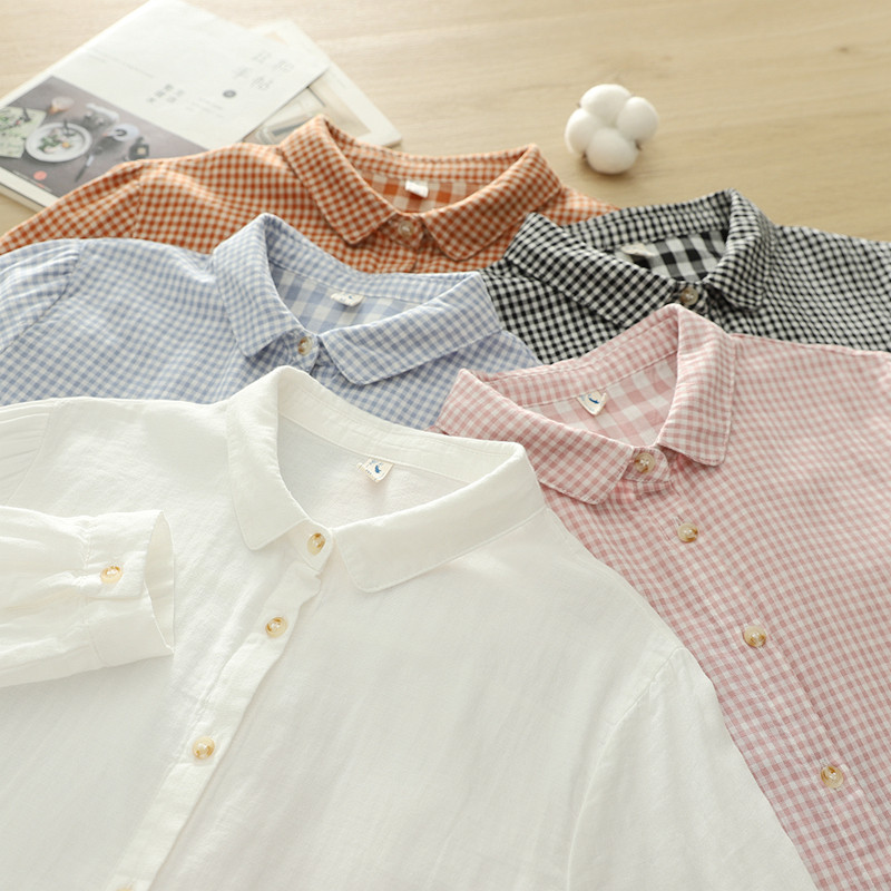 2025春季复古文艺小清新格子彼得潘娃娃领双层棉纱白衬衫女长袖潮