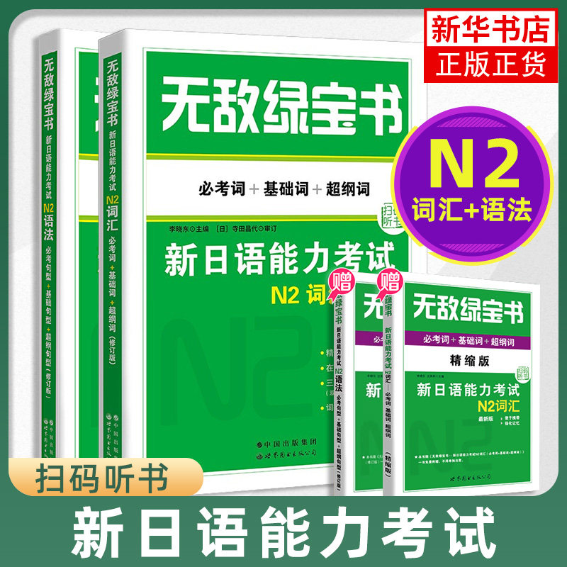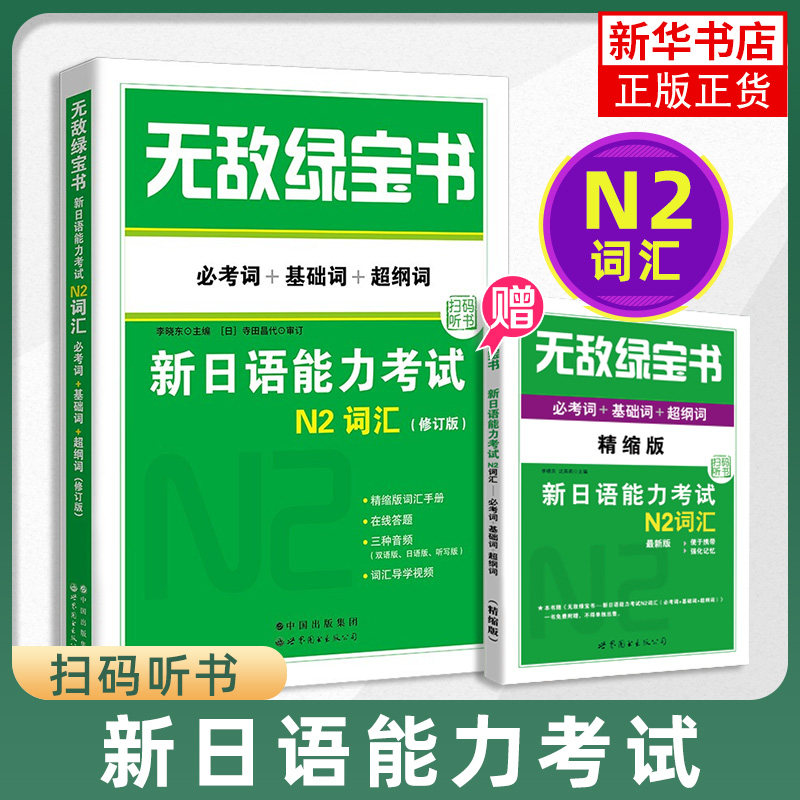 无敌绿宝书新日语能力考试N1N2N3N4N5词汇语法必考词+基础词+超纲词修订版新日语JLPT能力测试N2级二级单词书赠词汇手册世界图书