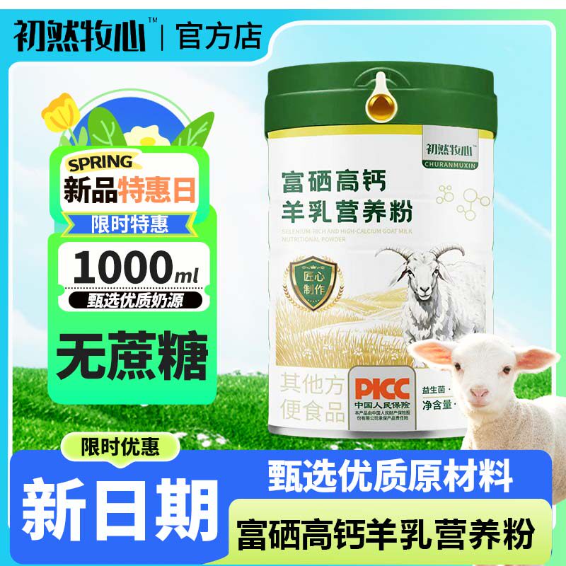 初然牧心羊奶粉富硒高钙羊乳粉送长辈中老年学生 奶粉益生菌1000g