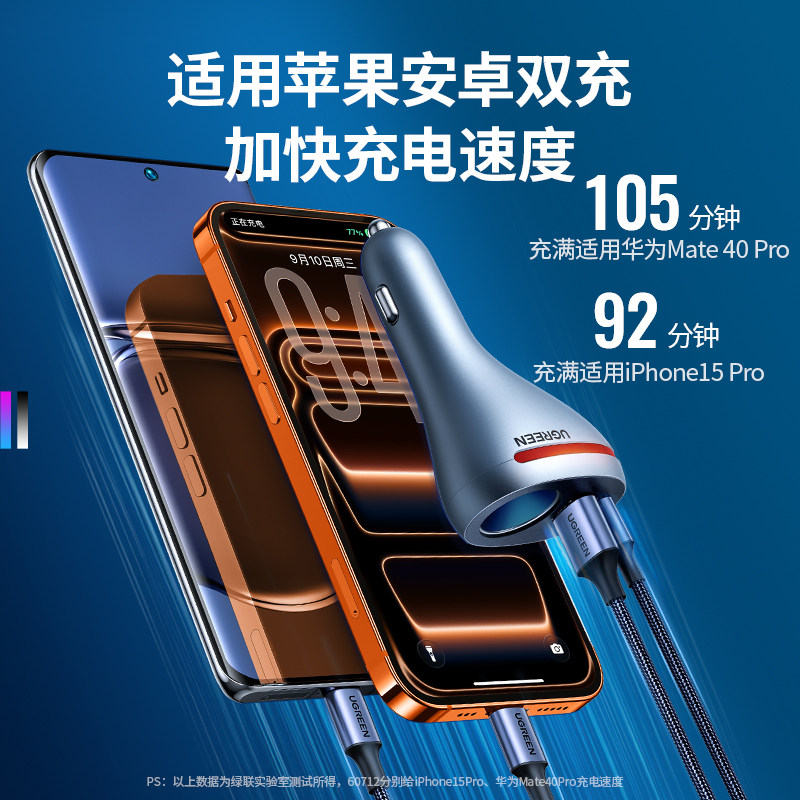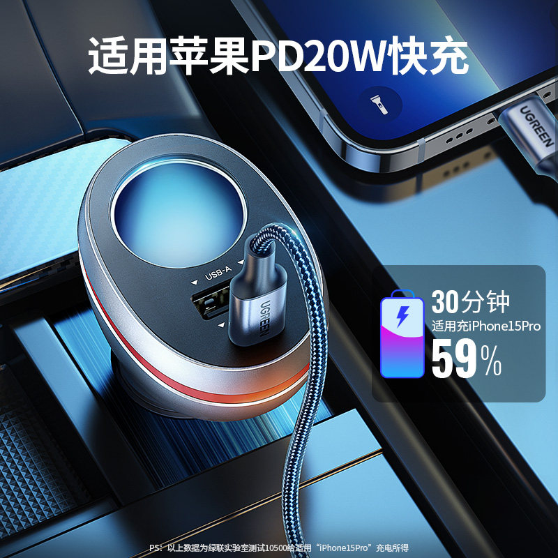 绿联车载充电器适用苹果17一拖二三usb扩展接口点烟器转换口插头