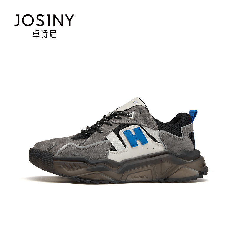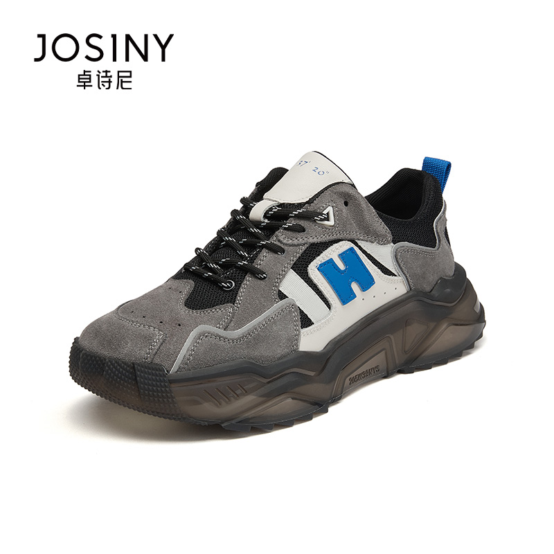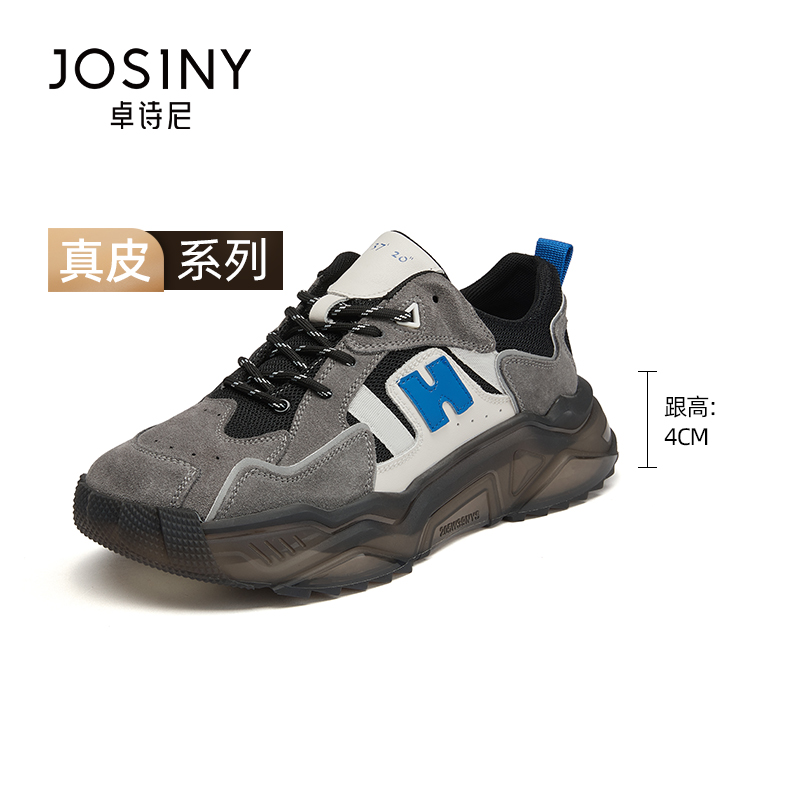 卓诗尼新款男鞋男士单鞋系带圆头深口低帮运动休闲老爹鞋百搭通勤