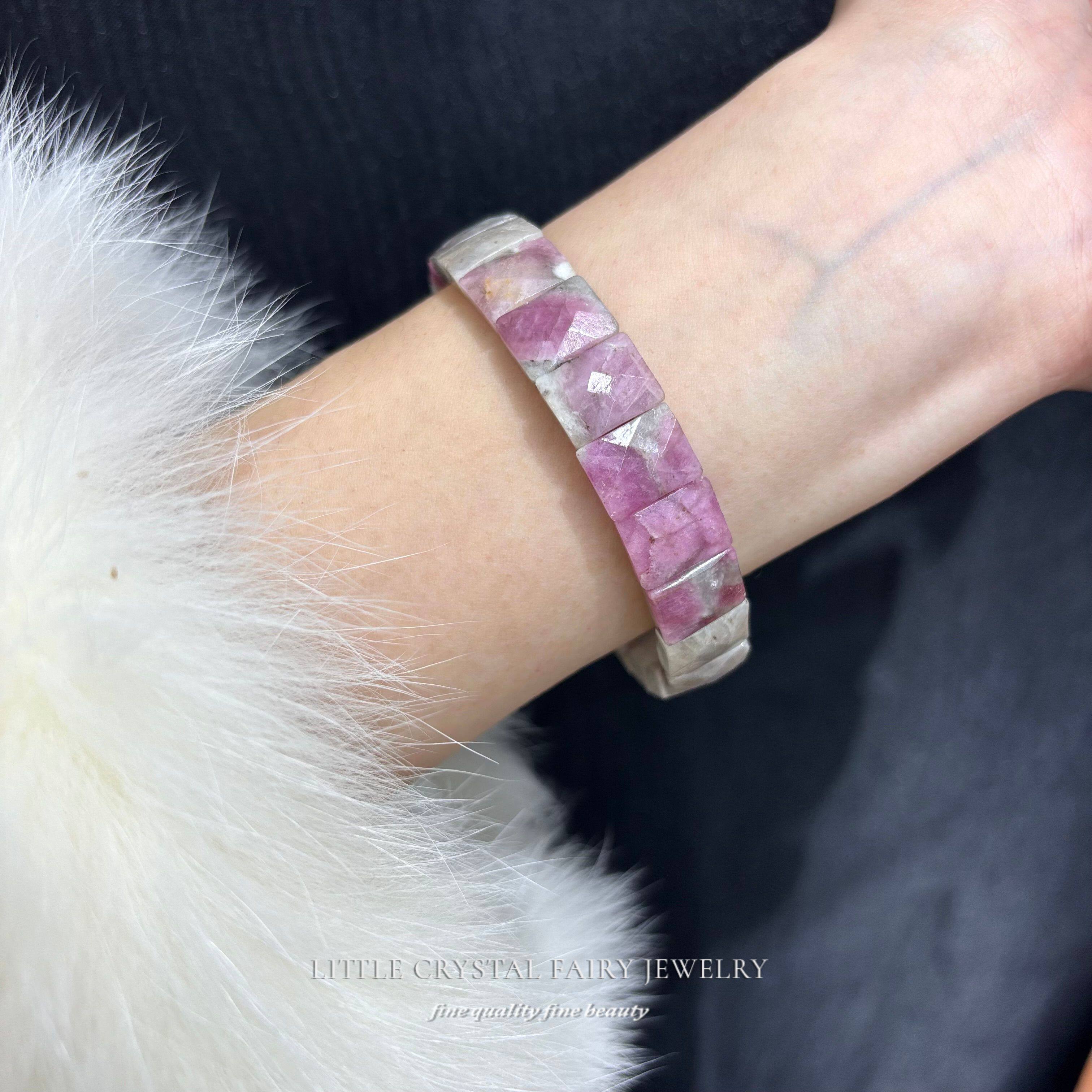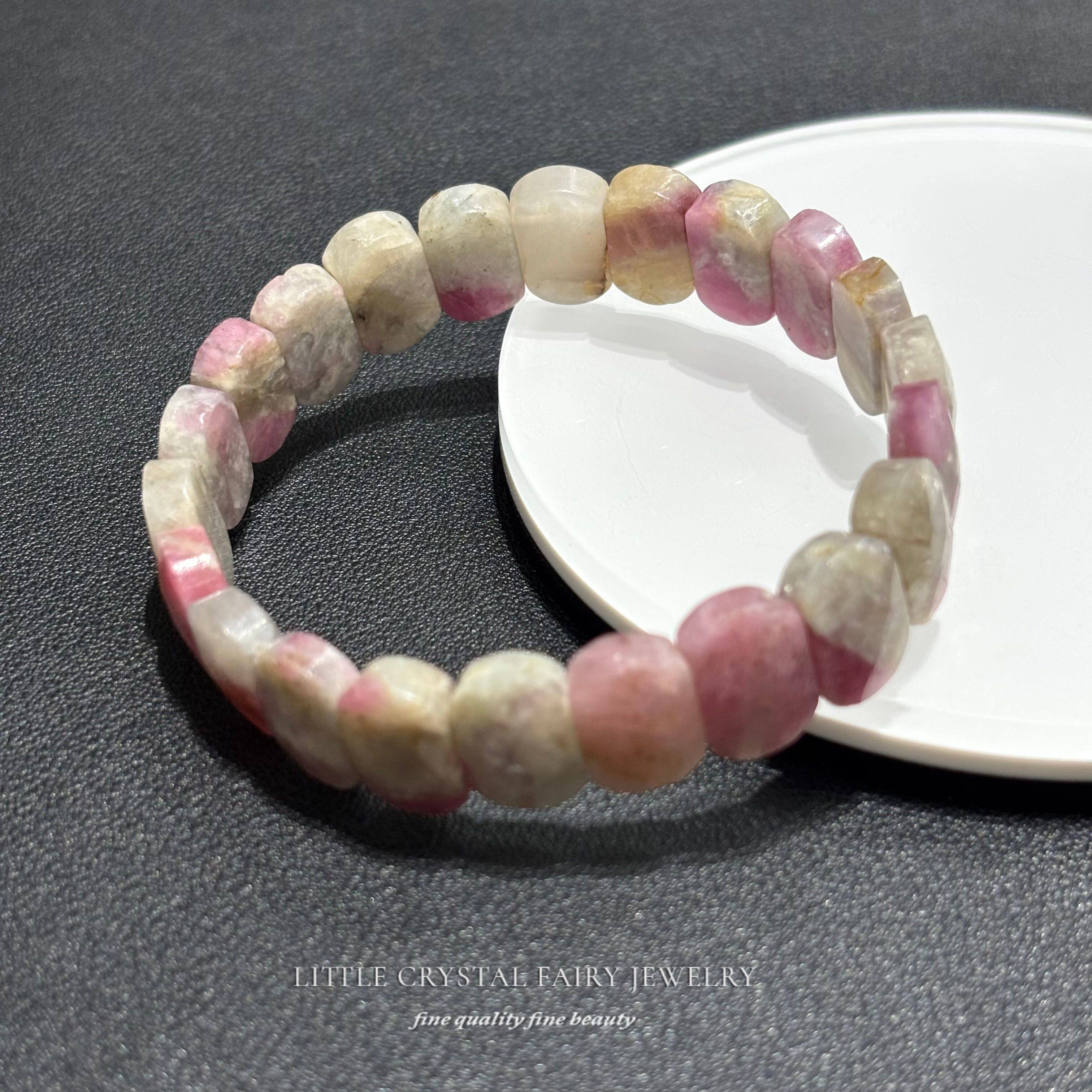 天然粉碧玺手牌排粉色宝石水晶diy原创材料手链手串小众女生礼物