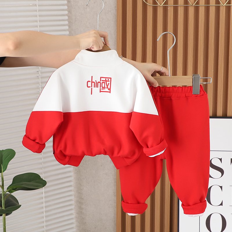 儿童春秋款拼色棒球服套装男童洋气运动服装卡通新款女童装宝宝潮