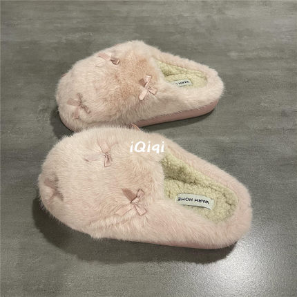 七七主人家 粉色棉鞋2024秋冬季新款保暖毛绒棉拖鞋女居家毛毛鞋