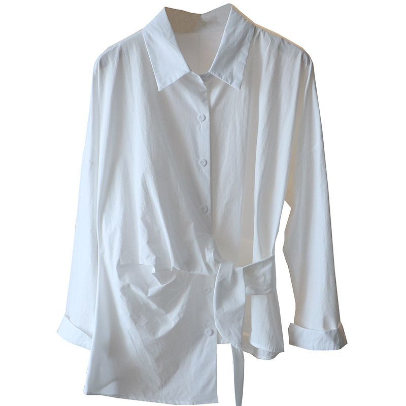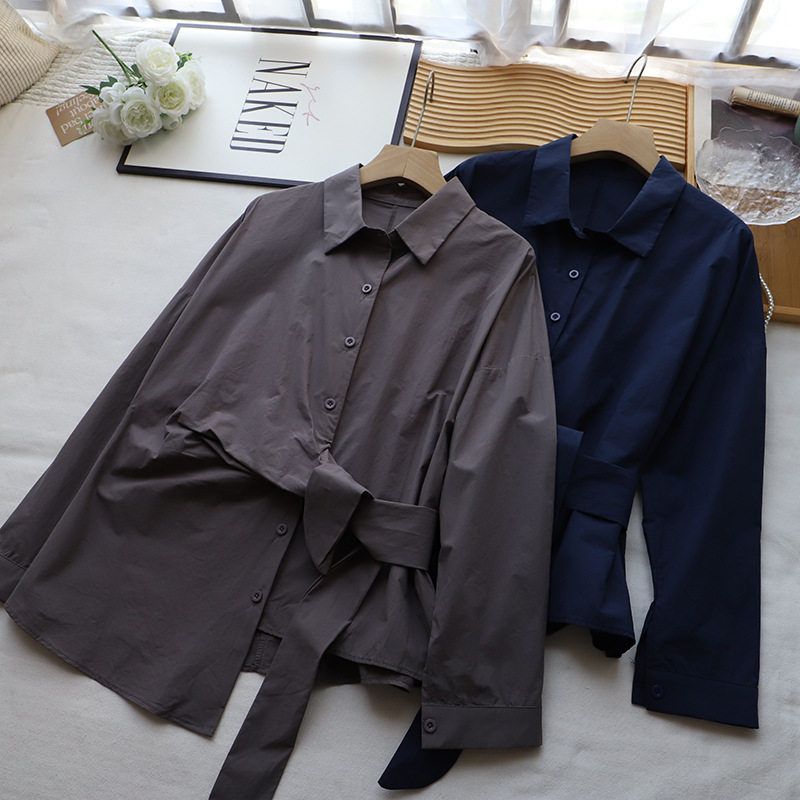 2025秋季新款韩版气质绑带收腰显瘦纯色百搭长袖衬衫4680强明女装