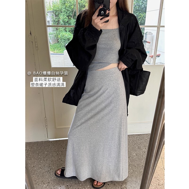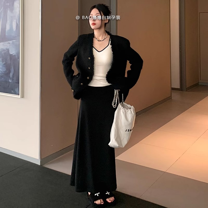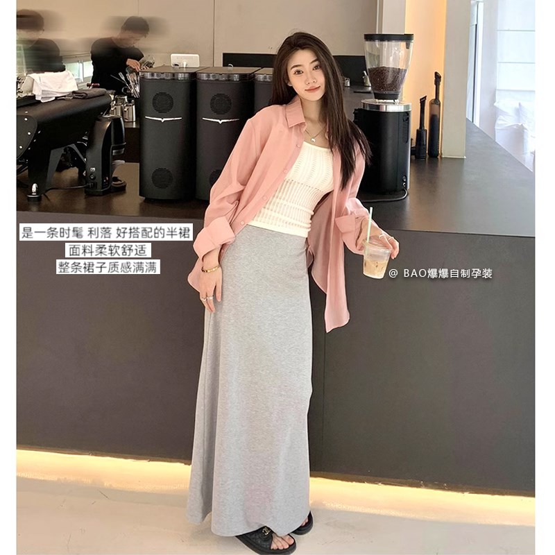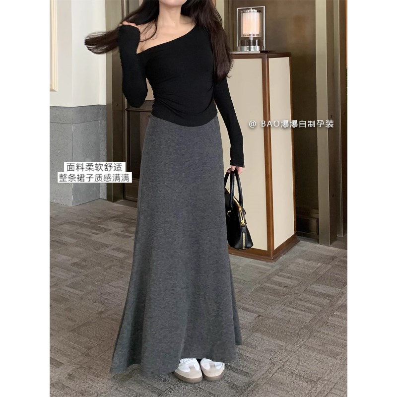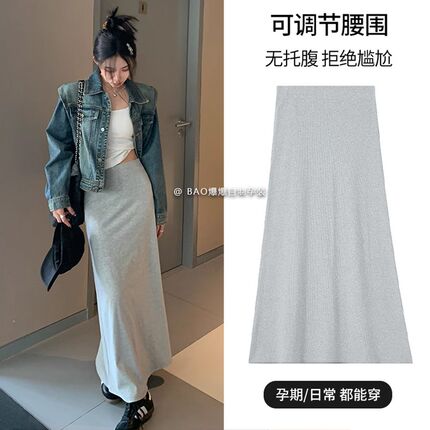 无托腹孕妇细纹大裙摆半身裙春秋季新款外穿复古S中长款显瘦A字裙