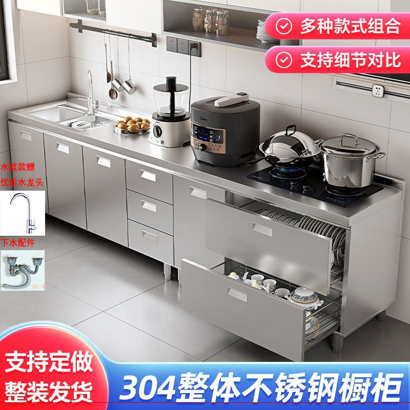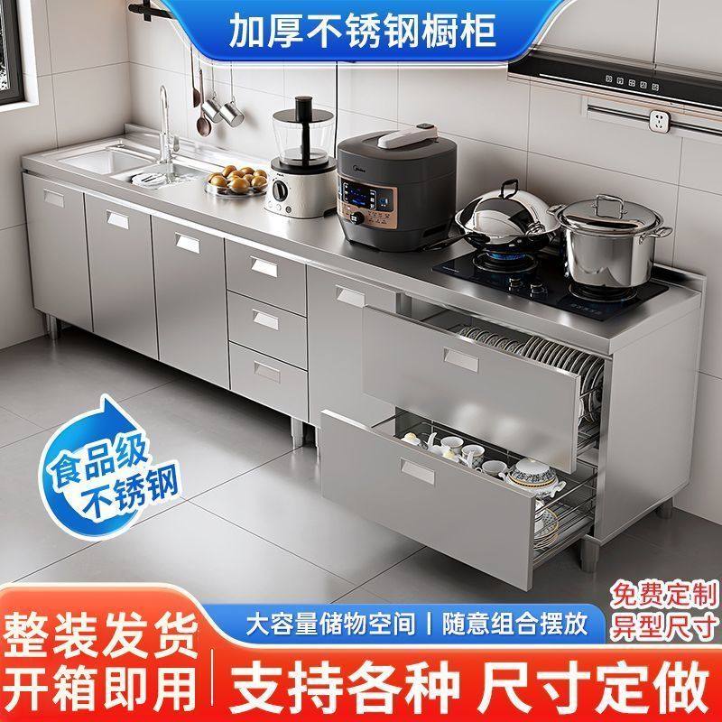 不锈钢厨房橱柜灶台柜水池水槽洗菜一体储物柜案板柜出租房公寓