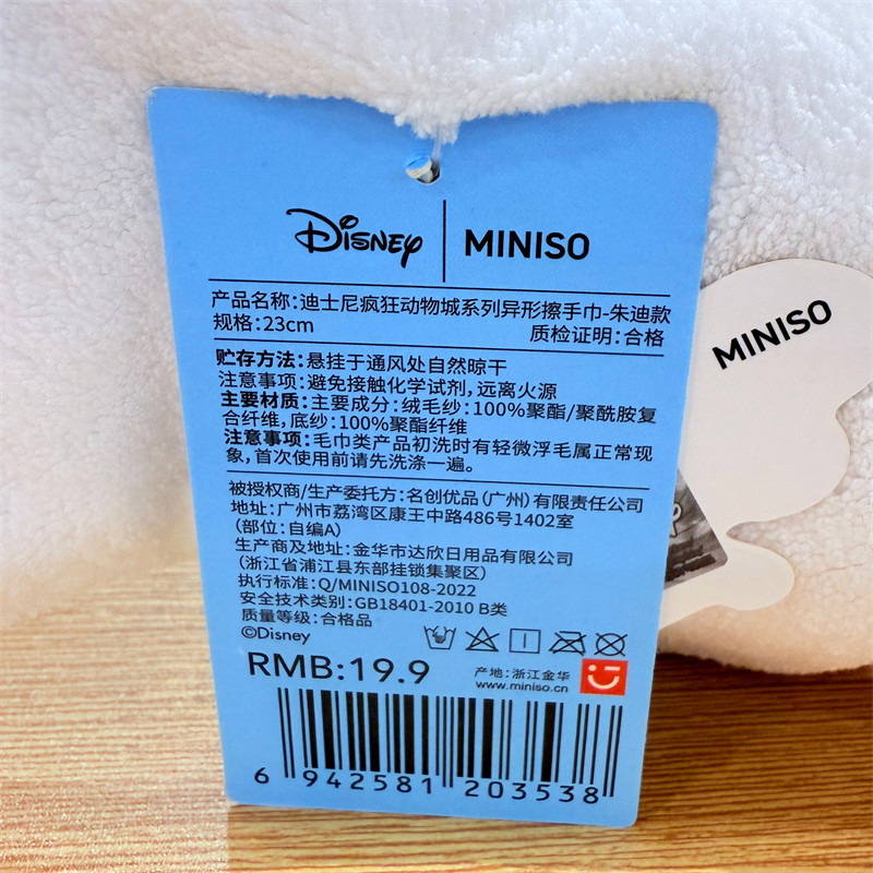 MINISO名创优品迪士尼疯狂动物城异形擦手巾柔软趣味可爱尼克朱迪